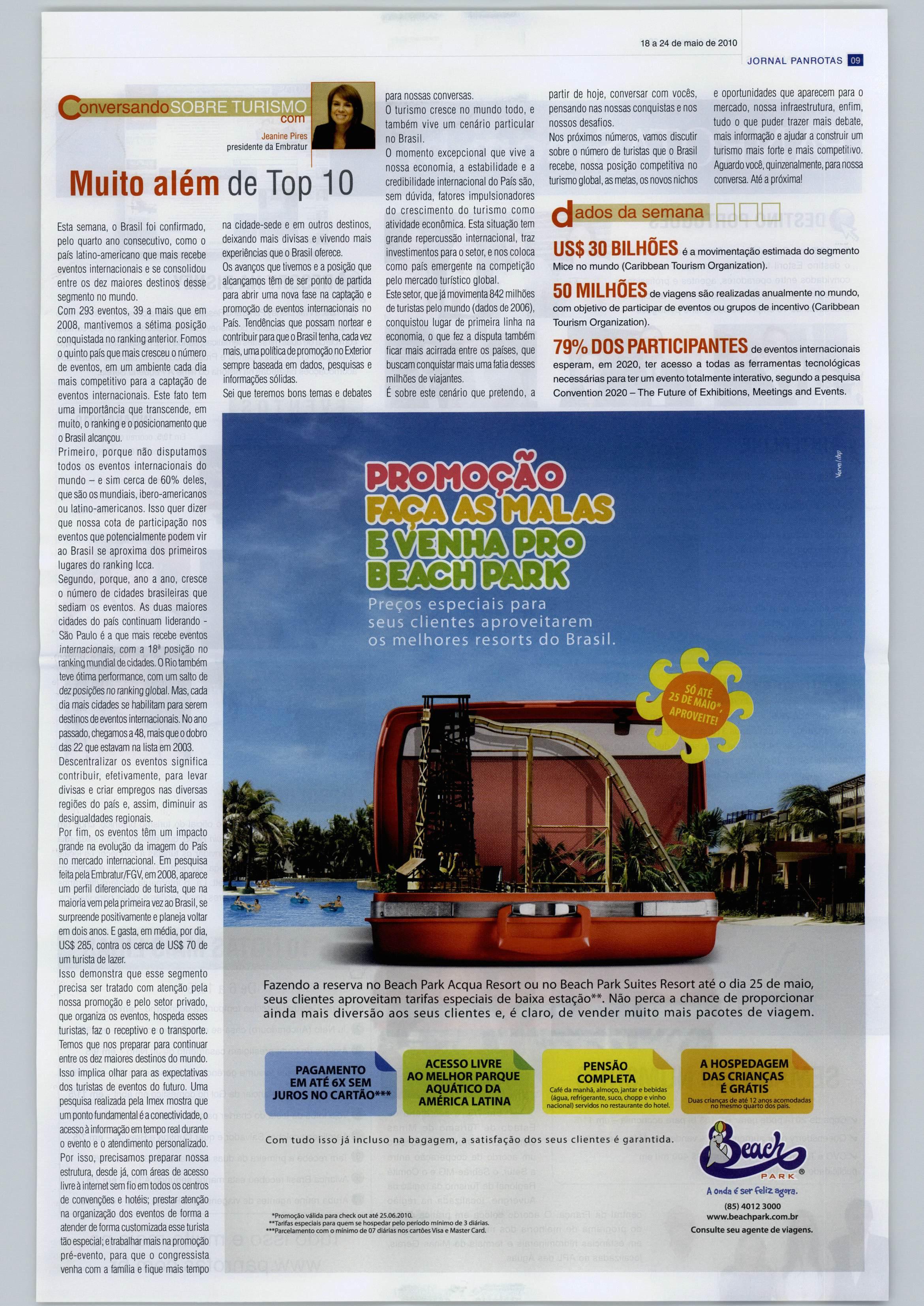 Muito se fala em aproveitar o legado que os grandes eventos esportivos (Copa e Jogos Olímpicos) trarão ao Brasil. Para tanto, os poderes público e privado já correm contra o tempoque parece passar cada vez mais rápido, sobretudo em relação às obras de ijifraestrutura nos aero portos e estádios do País. Contudo, as ações para elevar o patamar do Brasil como destino para grandes eventos não devem ser promovidas apenas noi País, mas também no Exterior. |