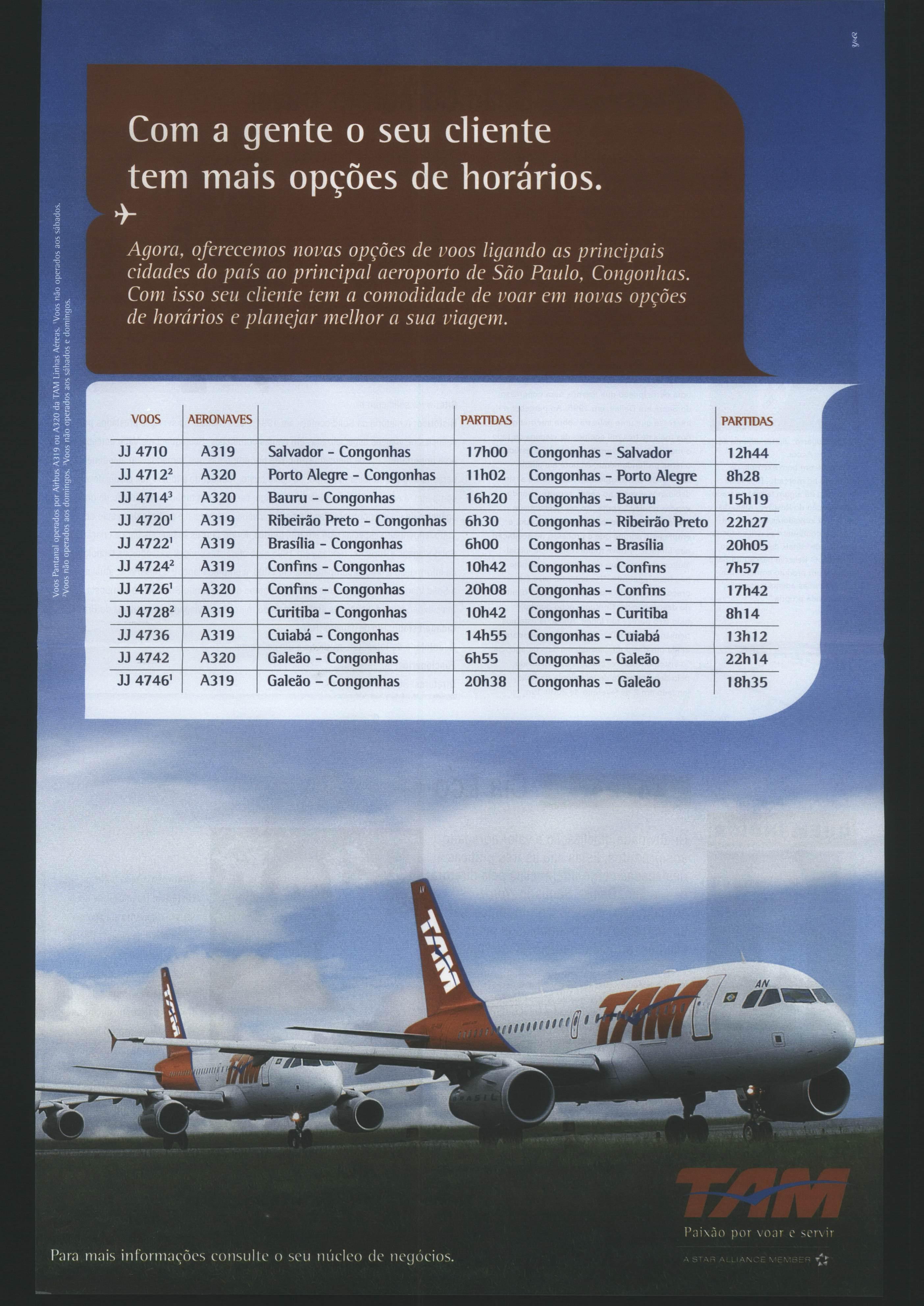 JJ 4722' A319 Brasília- Congonhas 6hOO Congonhas - Brasília 20h05