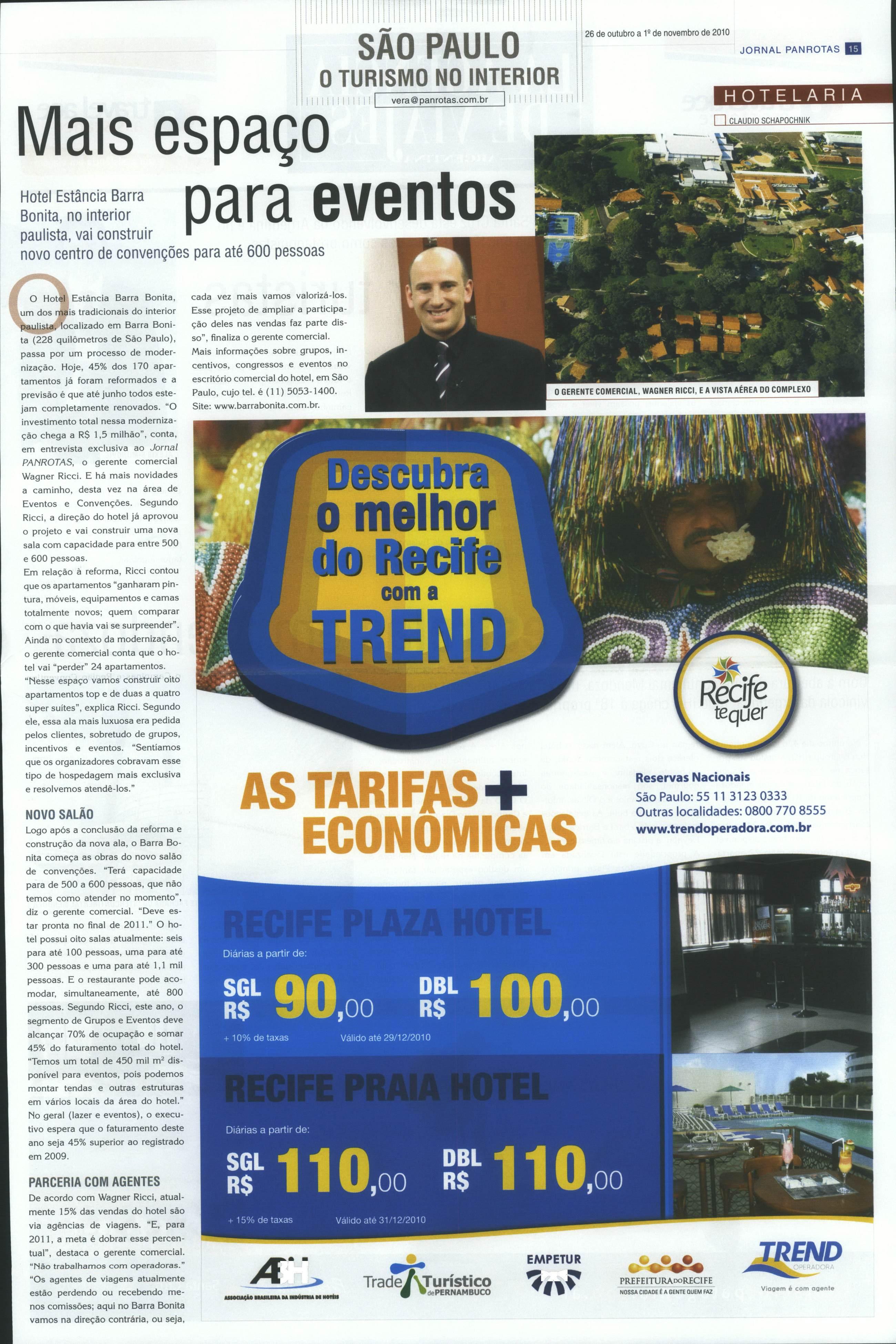 neste mês um escritório em Ribeirão Preto, no interior de São Paulo, exclusivo para os agentes de viagens. Com isso, a empresa pretende dividir com a filial de Campinas, também no interior paulista, a crescente demanda da região. Segundo o coordenador no novo escritório, Rafael Calábria, cerca de 400 agências de viagens já fazem parte do pool. Inicialmente, a nova loja tem foco nos cruzeiros e nos pacotes para destinos como Bariloche (Argentina) e Orlando (Estados Unidos). Alojaficana avenida Antônio Diederichsen, 400, M- andar, sala 1.710 - ed. Metropolitan. Os contatos são (16) 3441-6595 ou rafaei.calabria@agaxtur. com.br.
