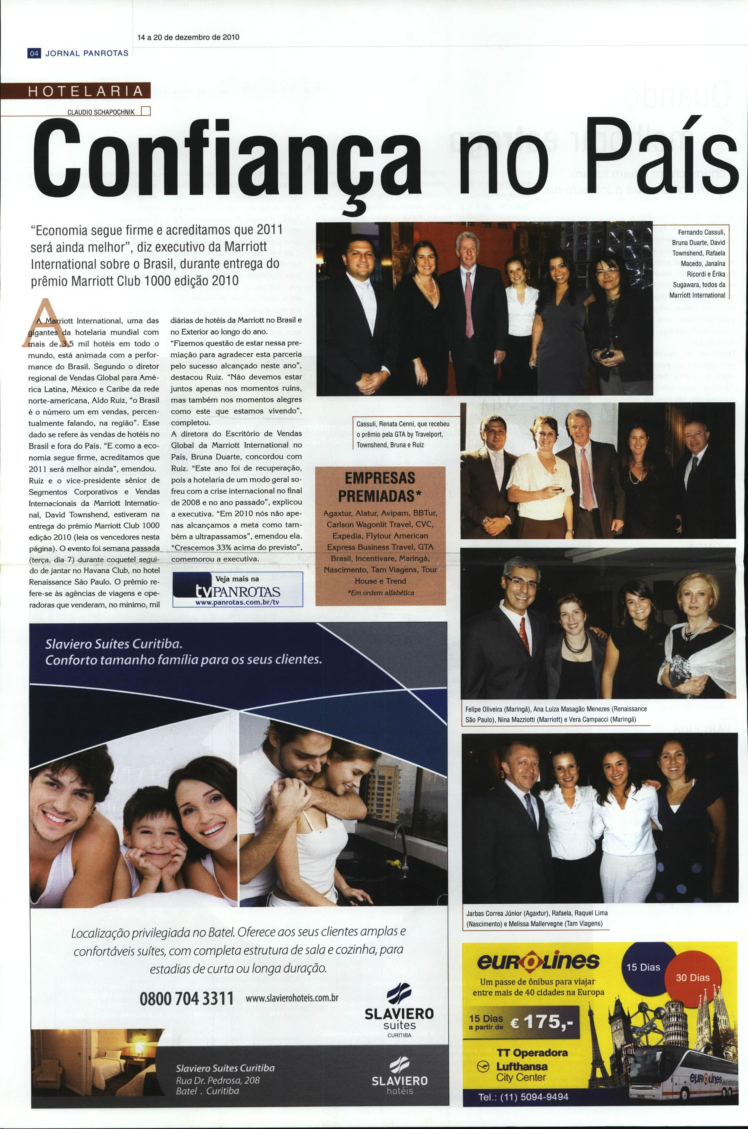 "Economia segue firme eacreditamosque 2011 será ainda melhor",dizexecutivodaMarriott International sobre oBrasil, durante entrega do prêmio Marriott Club 1000 edição 2010