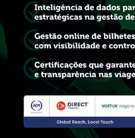 oferecendo passagens, pacotes nacionais e internacionais, seguro viagem, atividades... Tudo com atendimento personalizado. Curiosamente, boa parte da carteira corporativa nasceu de clientes de lazer que confiaram m s u ra al o a l aram ara dentro das empresas onde atuam – um reflexo direto do relacionamento construído ao longo do tempo.