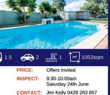 Awarded Best Free Newspaper by Country Press NSW JUNE 22-28, 2023 | LOCALLY OWNED & INDEPENDENT | FREE! PhotoNews DUBBO STARTS PAGE 23 S T A R T S Dubbo Photo News June 22-28, 2023 21 AGENT’S CHOICE LOCAL REAL ESTATE GUIDE DUBBO’S NEWEST