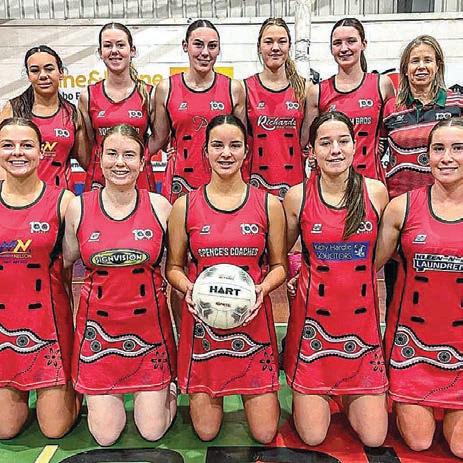 Back, Emma Goodman, Lucy Walker, Gemma Elbourne-Binns, Ariana Fearnely, Tohminya-Leigh Fernando, Shyla Delaney, Scarlette Coyle, Zoe Reyes, Matt Stonestreet (coach), front, Aria Bernard, Katie Colwell, Regan Godber, Xanthe Klaare, Matilda Dowell and Emily Bruce.