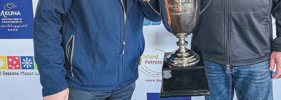 with the International Fours trophy, Chairman of Club Dubbo, Tony Speirs with former World No.1, Steve Glasson.