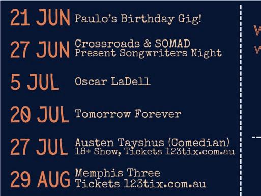 30,000 local readers every JUNE 20-26, 2024 | LOCALLY OWNED & INDEPENDENT | FREE! Hoardes of patrons shook off the winter chill at Dubbo’s Winter Whisky Festival over the weekend, for some great outdoor social fun. Pictured here are Antonne, Mel, Libby and Pieta –they definitely seemed to have enjoyed themselves. PHOTO: DUBBO PHOTO NEWS DWWF FUN SNAPS ❱❱ PAGE 16 & 17 YearlingT-Bone Steak $17 99 KG Chicken Breast Schnitzel $13.99 kg Pork Spare Ribs Plain or Marinated $14.99 kg Beef Sausages –Thick or Thin 3kg for $20.00 pecial OFFER www.dubbomeatcentre.com.au | (02) 6881 8255 | 55 Wheelers Lane, Dubbo Fresh Tiger Prawns – Medium $19.99 kg Ends 29th June, 2024 while stocks last NE 20 26, 2024 LOC ALLY E! That’s the Spirit!