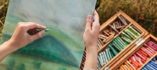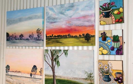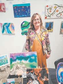 works. “Producing art awakens me, inspires me, and makes me look at the world differently,” artist Sharon Mansfield explains. Emily Sutherland shares similar sentiments: “My paintings are reflections of my inner world, expressing my hope to bring joy to others. They celebrate life’s beauty and invite people to pause and appreciate the small moments of happiness that nature offers.”