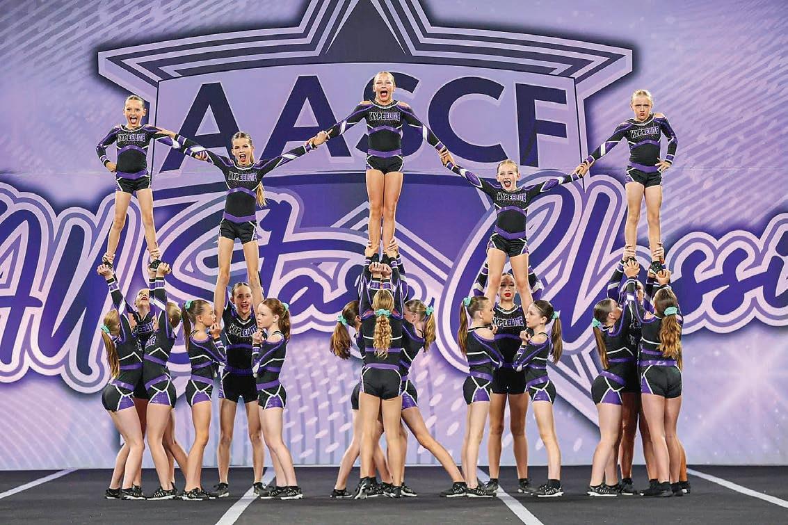 The Club’s Junior Level One “Eclipse” team (girls 8–15 years), which had also trained hard all year, put their best stunts and tumbling on show, performing strongly to come in at third place.