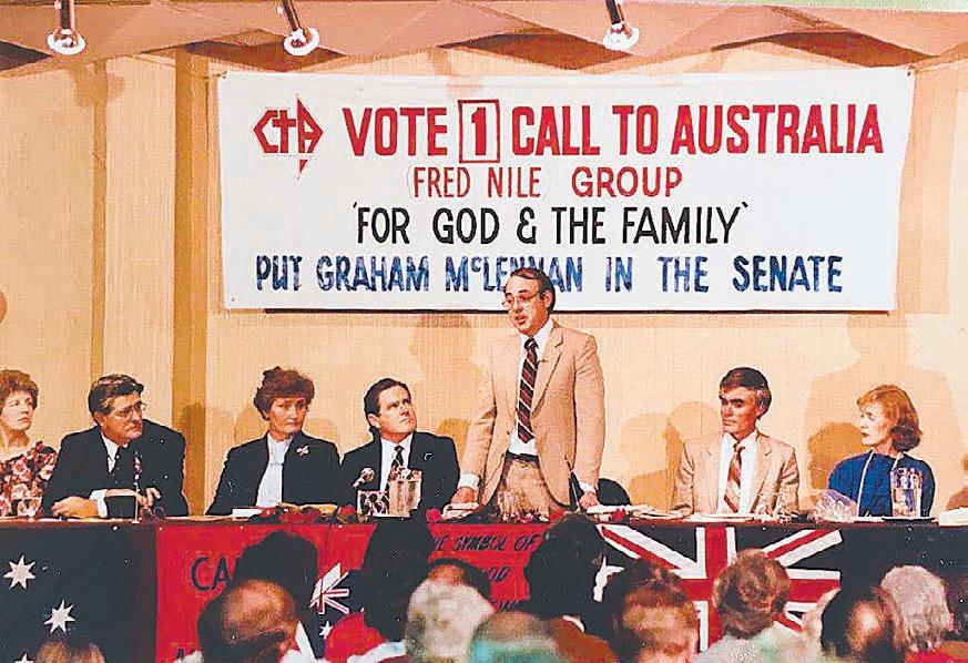 Many social issues at the time saw Graham take a keen interest and active role in politics between 1980 and 1998. He stood for various positions including twice for the Senate, and nearly got elected to the Upper House along with Fred Nile when they stood as a team in 1981.