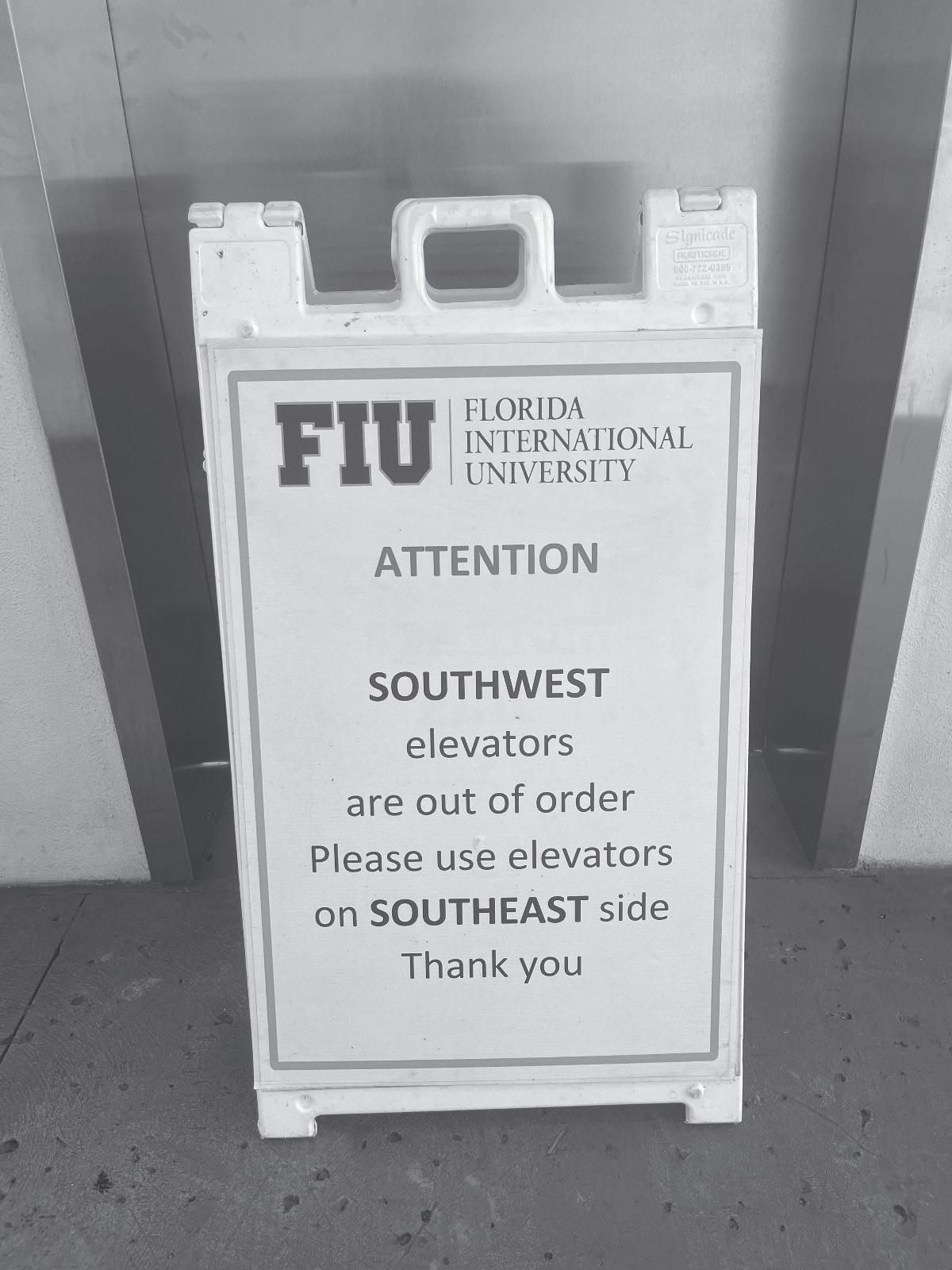 With the high admissions rate, the FIU population comprising 93 percent commuters and the parking nightmare having no end in sight, the dependency on elevators isn’t going away anytime soon.