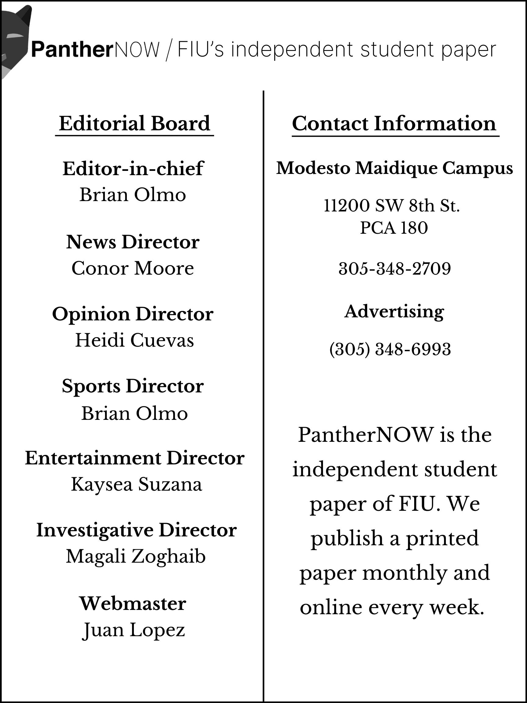 Editorials are the unified voice of the editorial board, which is composed of the editor in chief, management, and the editors of each of the four sections. PantherNOW welcomes any letters regarding or in response to its editorials.