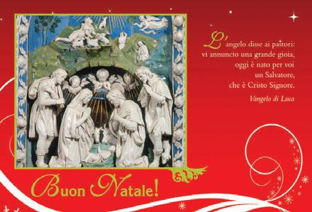 Riproduzioni d’arte religiosa e testo per un elegante augurio natalizio e pasquale.