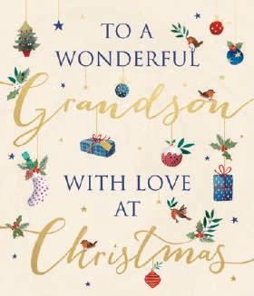 A collection of 10 matching Christmas cards in a solid box with an open window, giving a clear view of the design inside. Available in Contemporary and Modern Traditional styles, each card is finished with gold matt foil and 3D embossing, creating a striking, high-quality festive look that stands out on the shelf.