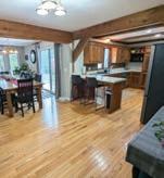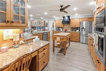 and a scenic golf course backdrop. Featuring skylights, large windows, and an open-concept kitchen, it’s flooded with natural light. Enjoy a wraparound deck, pellet stove, three-car garage with a workshop, and extra lot. Move-in ready and priced to sell— your perfect lakeside retreat awaits!