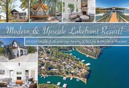 Incredible Lake Front Commercial Opportunity!! Welcome to Rod N Reel Resort! A modern & upscale Table Rock Lake experience like no other with 10 free standing cottages/cabins, 2 glamping tents, 2 docks - a 14 slip leased dock and a 2 stall private dock, and a private 3000 sq. ft. private house currently under construction! Situated on 4.88 acres, this special and unique property offers five 3bed/2 bath cottages, three 1bed/1 bath cottages & 2 studio cottages. All are equipped with kitchens/kitchenettes, washer & dryers & park style outdoor charcoal grills. Feel like ‘’roughing’’ it? There are 2 luxury studio glamping tents with kitchenettes and full baths. Enjoy the Community picnic/firepit area. Additional Laundry facilities with 2 garages & upstairs1 bed/1 bath apartment that’s perfect for housekeeping quarte rs. Public boat launch located only 1.6 miles from the resort.