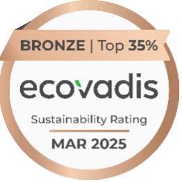 In 2025 hebben we opnieuw deelgenomen aan de duurzaamheidsbeoordeling van EcoVadis, één van de wereldwijd meest toonaangevende beoordelingsplatforms op het gebied van ESG. We behaalden de Bronze medaille, met een totaalscore van 60/100, een stijging van vijf punten ten opzichte van het jaar ervoor. Daarmee behoren we tot de beste 35% van beoordeelde organisaties wereldwijd.