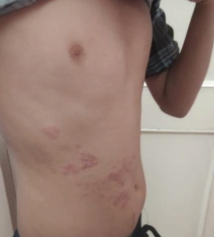 A 13-year-old male presented with complaints of severe pain, burning sensation, and itching over the right side of the abdomen Herpes Zoster