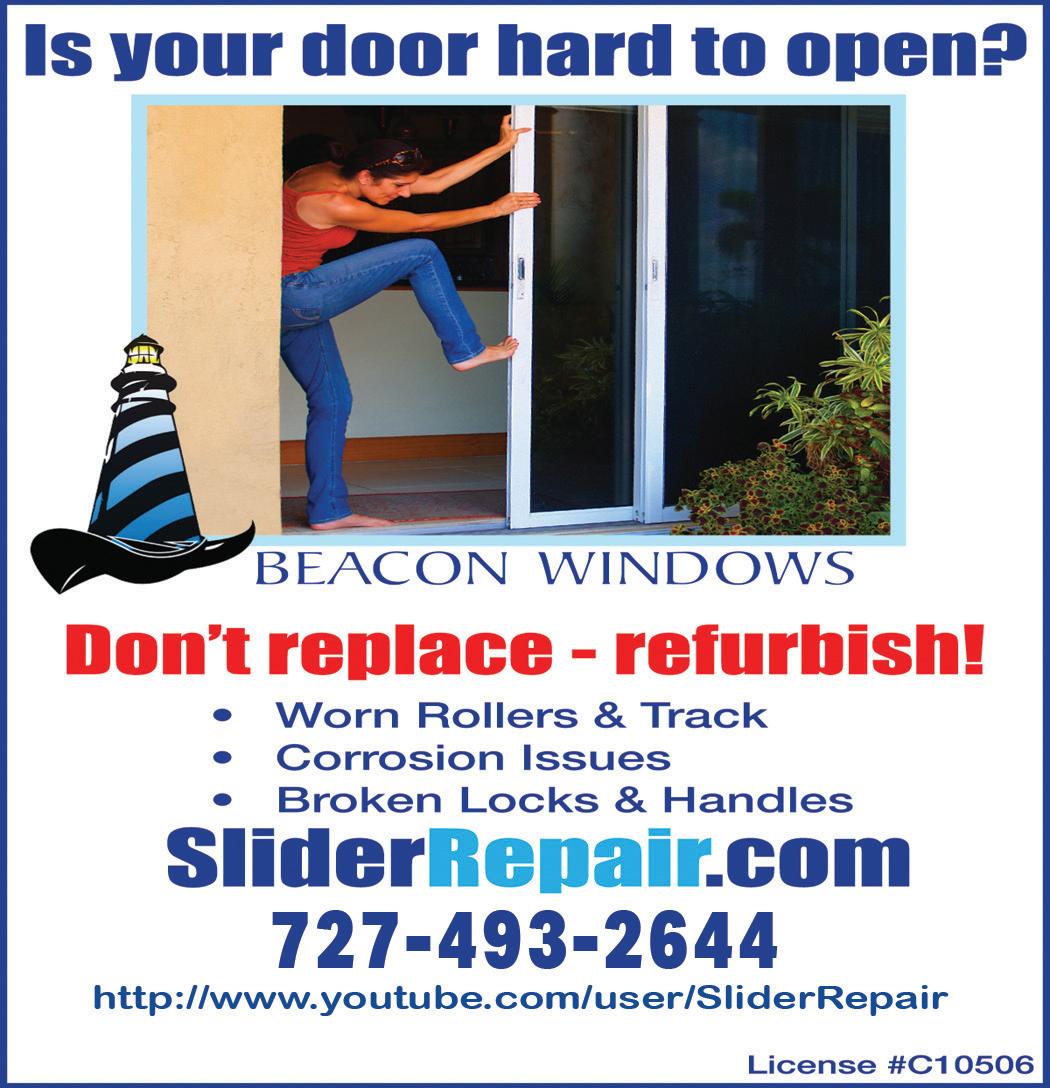 jkwenner@gmail.com CLASSIFIED Get the Double-Czech Serving the Beaches for over a decade! Move In/Out • Post Construction Reliable • Monthly • Biweekly R e p u tat i o n f o R e u R o p e a n t h o R o u g h n e s s 727 430-8826 Cleaning Guarantee GlowinG RefeRences AvAilAble Cleaning Service LLC M a k e S o m e M e m o r i e s ! DOLPHIN LANDINGS S t P e t e B e a c h 7 2 7 . 3 6 0 . 7 4 1 1 w w w . d o l p h i n l a n d i n g s . c o m Sunset Sail • Dolphin Watching • Island Adventures Pv t. Char ters Business or Pleasure Sign up at www.SacinosCleaners.com • Dry Cleaning • Wash-Dry-Fold • Patio/Boat Cushion Cleaning • Alterations • Shoe & Handbag Repair Call 727-471-0573 or sign up online at SacinosCleaners.com FREE PICK UP & DELIVERY to your home & office! Cushions, bedding, pillows, rugs & much more! 25%FIRST DRY CLEANING OFF