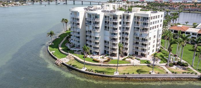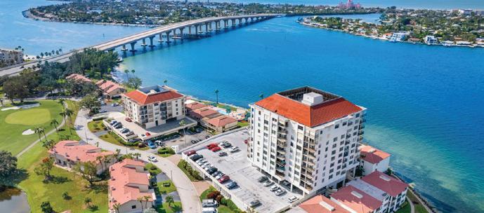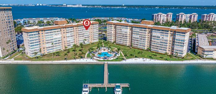 Positioned to capture sweeping, unobstructed views of Boca Ciega Bay, this expansive corner penthouse unit has high ceilings and an abundance of natural light.