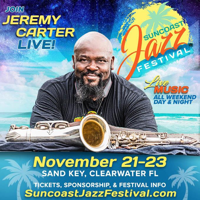 We dedicated a full page in both October and in this issue to celebrate the 35th annual Suncoast Jazz Festival, Nov. 21-23 indoors at the Sheraton Sand Key which brings local, national and international stars together. There is a link to tickets in our issue online.