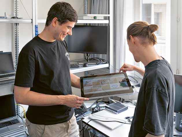 könnten im Ernstfall alle Systeme im Notbetrieb aufrechterhalten werden. Er erklärt, wie die Plattformen aufgebaut sind, welche Tochterfirmen angebunden sind und wie die Systeme miteinander kommunizieren. Moritz hört aufmerksam zu. « Ich war überrascht, wie weit Fabrizios Aufgabenbereich reicht und wie viele Menschen indirekt von seiner Arbeit profitieren», sagt er später. Besonders beeindruckt ihn die Tatsache, dass Fabrizio überwiegend im Homeoffice und oft bis spät in die Nacht arbeitet – und jederzeit für den Pikettdienst bereitstehen muss.