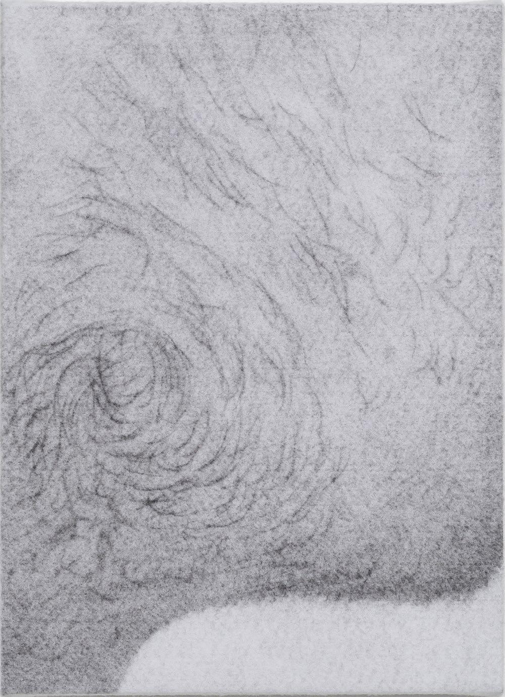 Graphite pencil on felt stretched on panel