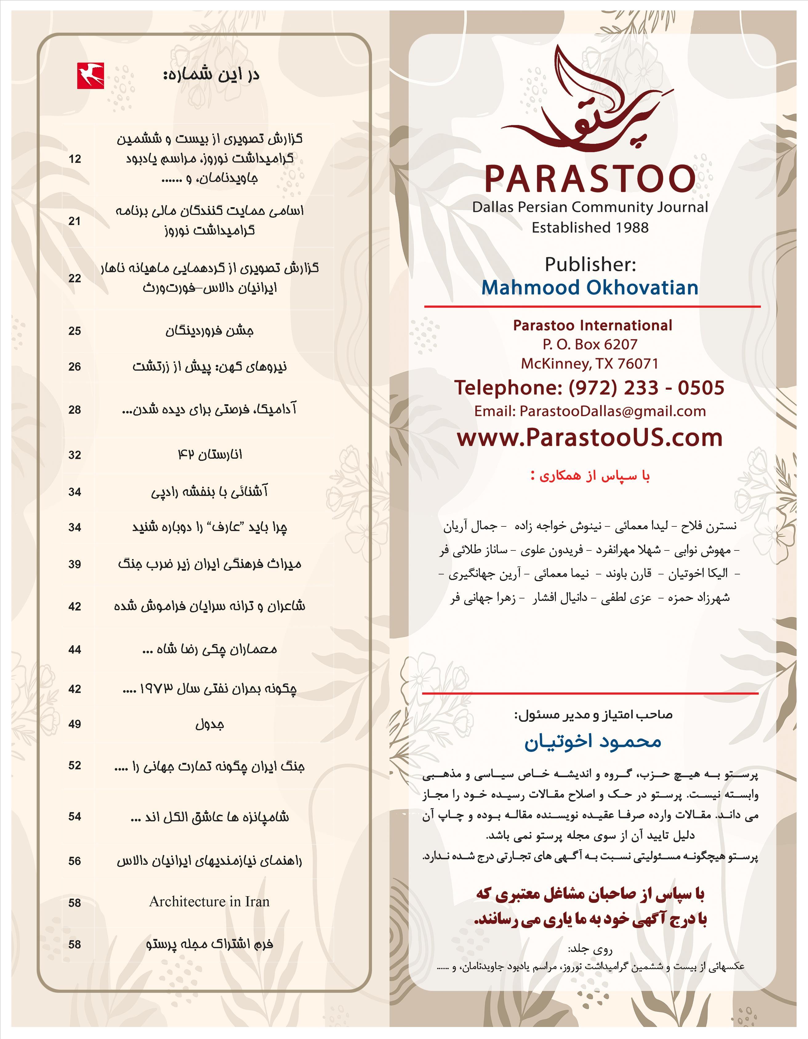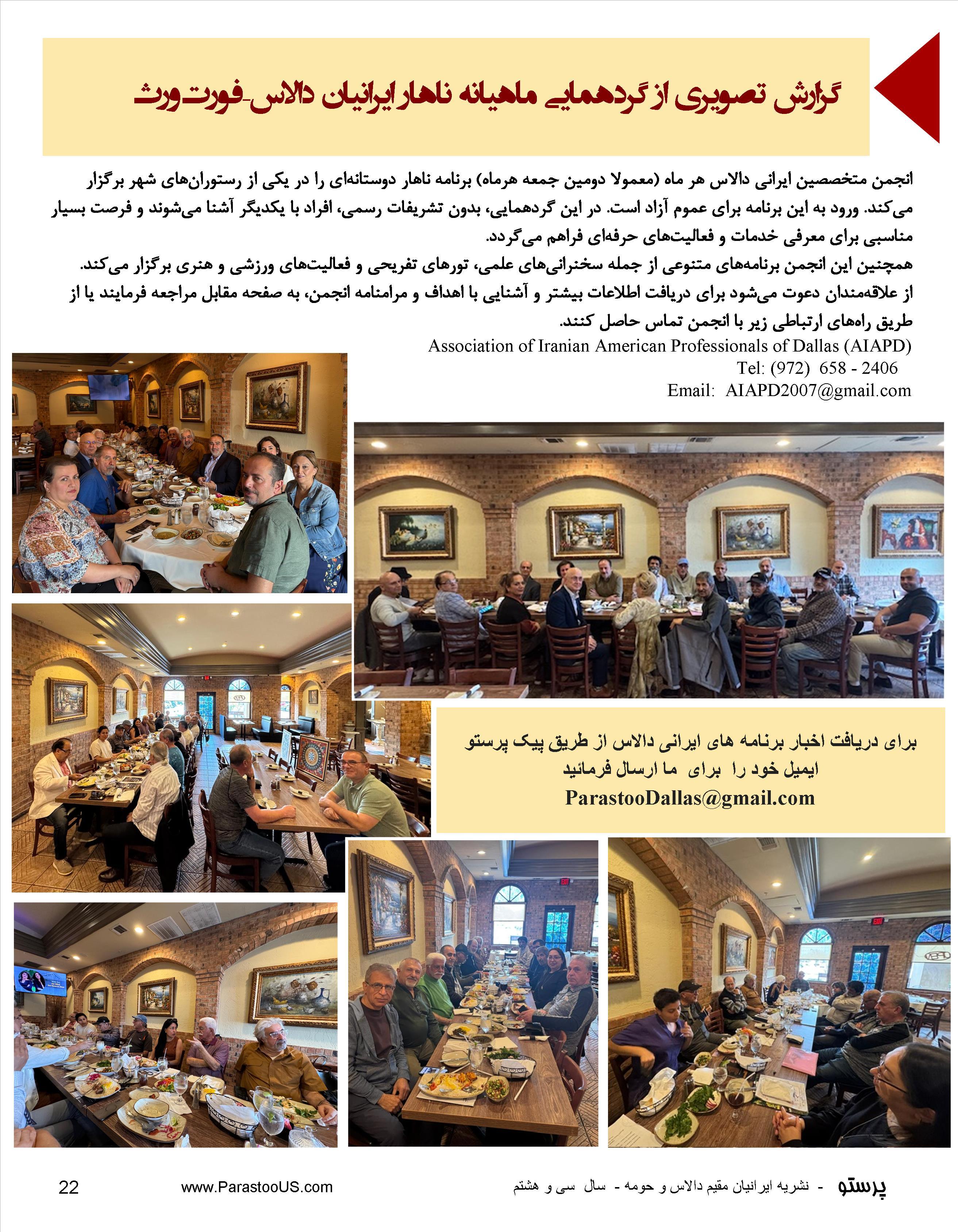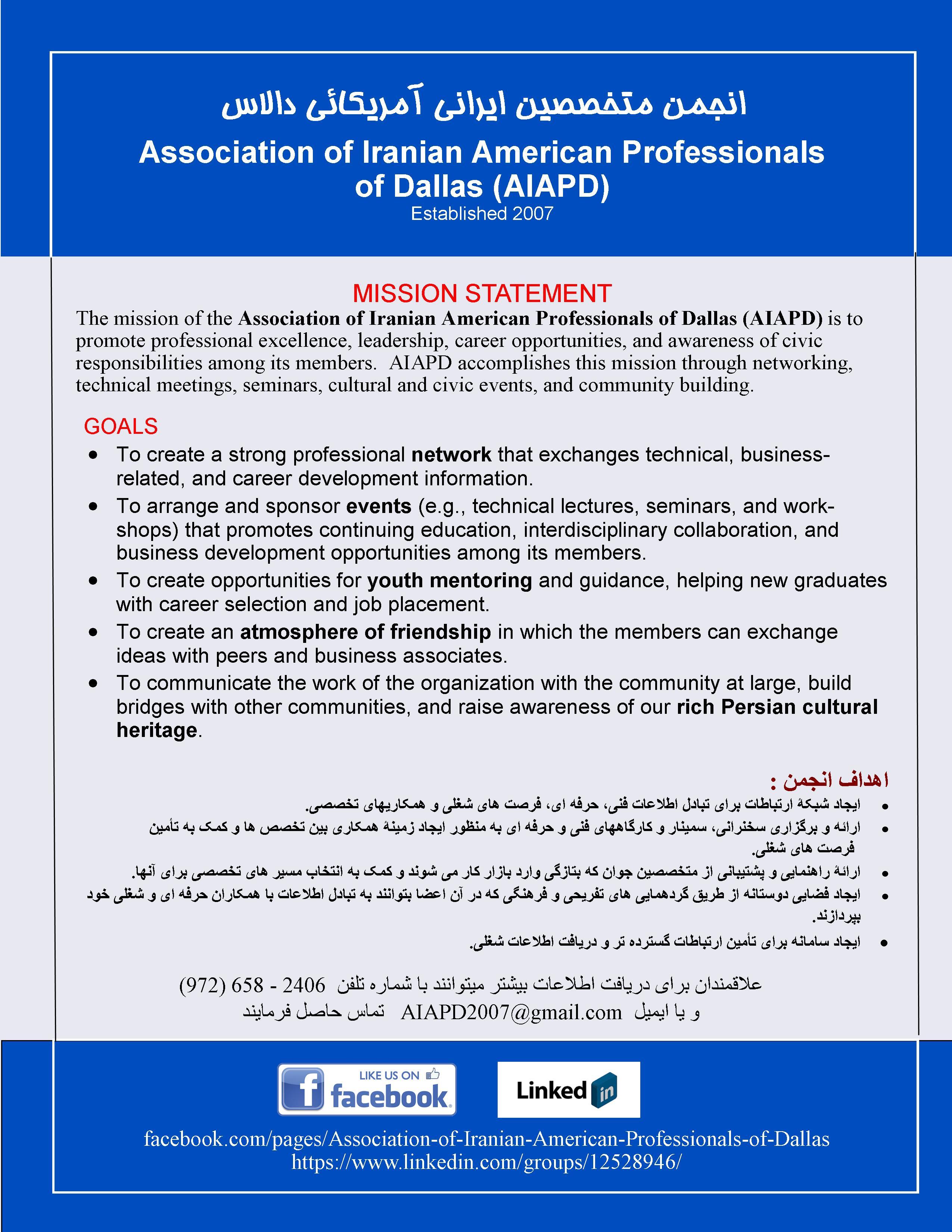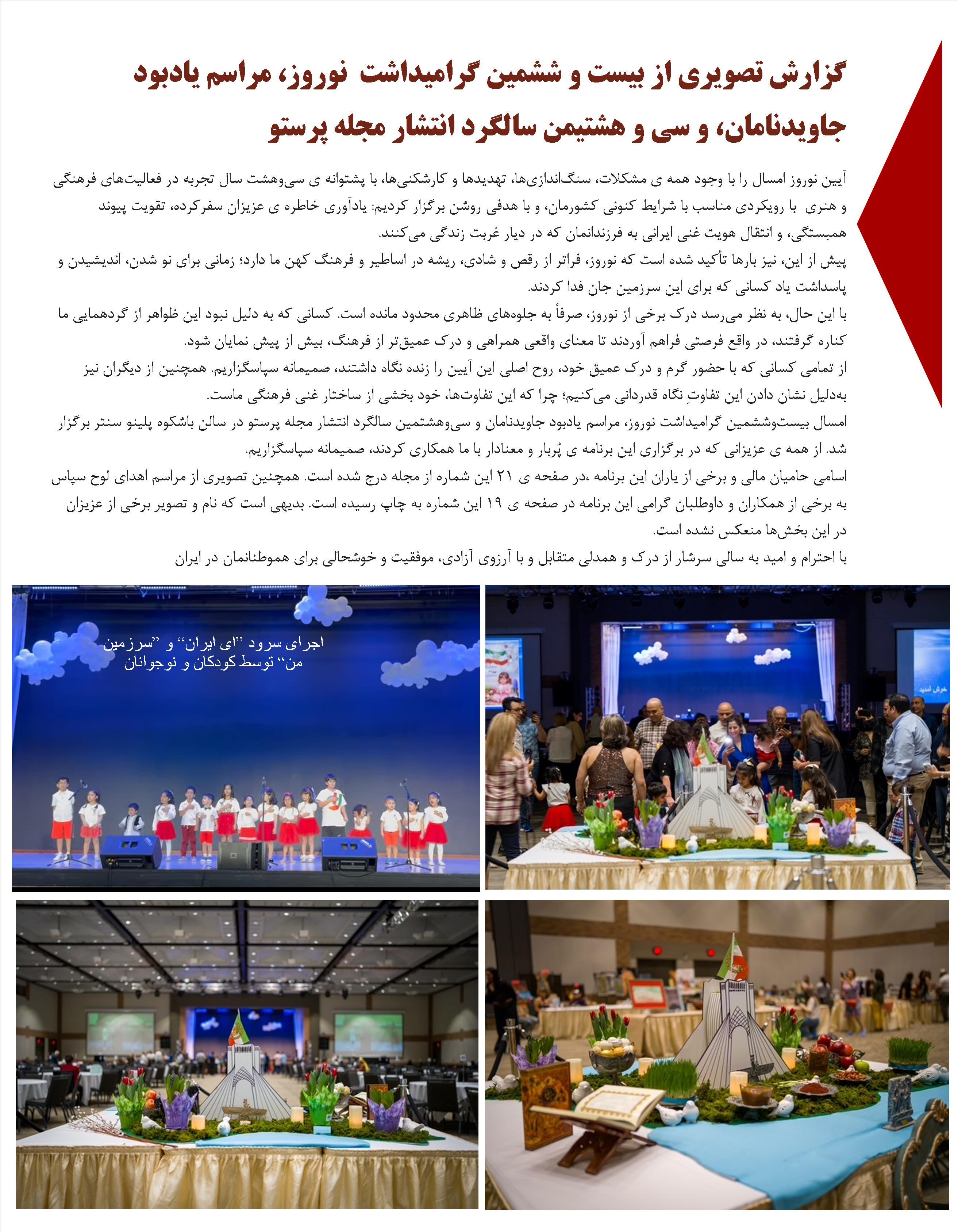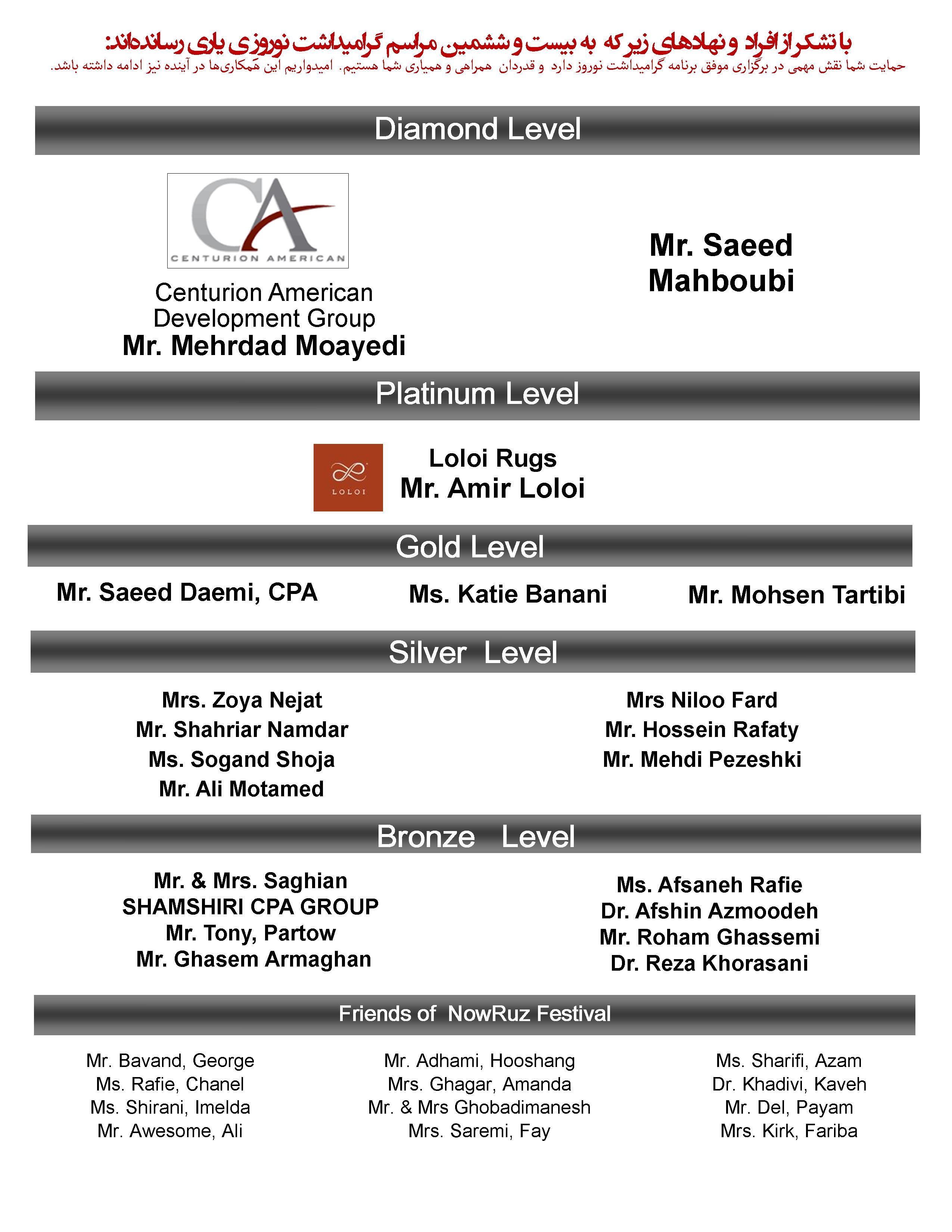 Mr. & Mrs. Tanha (sponsoring lunch for the event practices & proving Video system) - Mr. Reza Madani (event insurance) -