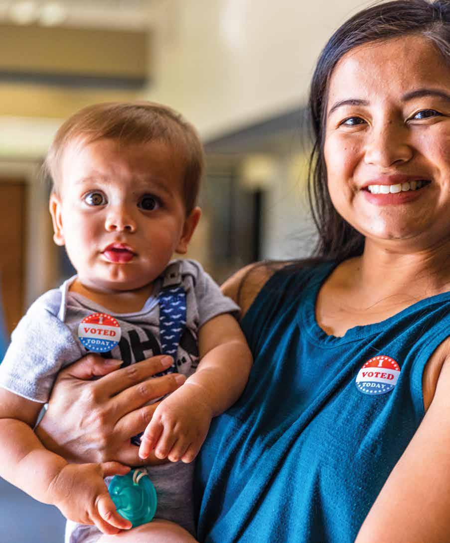 1. Workplace justice and paid family and medical leave: Advance permanent, comprehensive paid family and medical leave, and earned sick time laws that give every working person access to paid leave. Raise the minimum wage, abolish the tipped minimum wage, achieve pay equity and transparency, and protect LGBTQIA+ people from discrimination through laws and executive orders. Learn more at momsrising.org/ campaigns/workplace-justice.