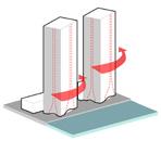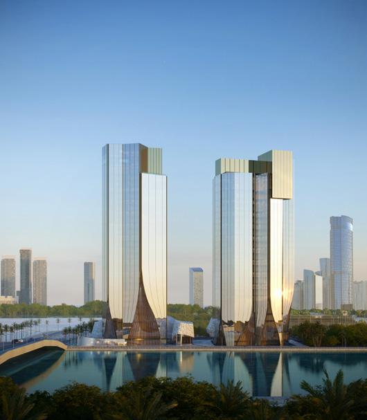 The development consists of a pair of asymmetrical 120-metertall towers, a 26-story hotel, and a 29-story residential tower, with a combined total floor area of 57,600 m². Set on Reem Island, a natural island near Abu Dhabi, the project was designed by BLINK Design Group as a concept integrating diverse programs, including hotel and hospitality services, branded residencies, retail, offices, and recreation, which features a pool, spa, gym, and kids’ club.