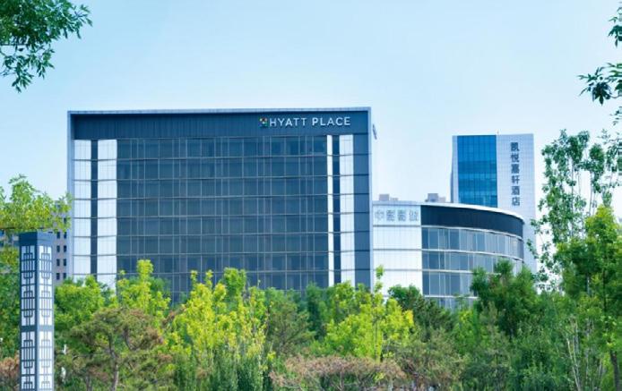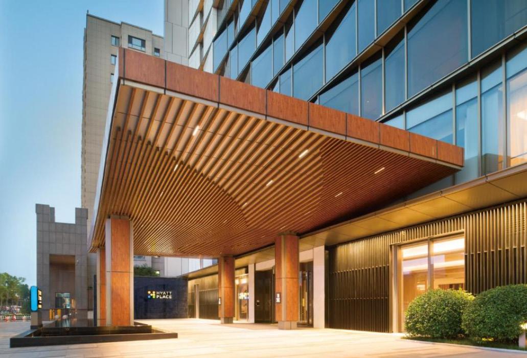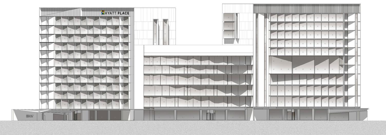 In collaboration with an architecture practice based in China, BLINK Design Group has completed a façade design for Hyatt Place. The project involves designing a hotel drop-off and new façades integrated into a completed concrete structure of a mixed-use building combining hotel, retail space, and office. The primary issue related to the design of the façades was the physical constraints of an existing frame structure. In addition, the design intends to reduce the solar heat gain and regulate the amount of light entering the interior space. We optimized the angles of the façades to respond to building orientation. As a result, the façade incorporates repetitive modules of angled, full-height tinted glass windows with their symmetric pairs.