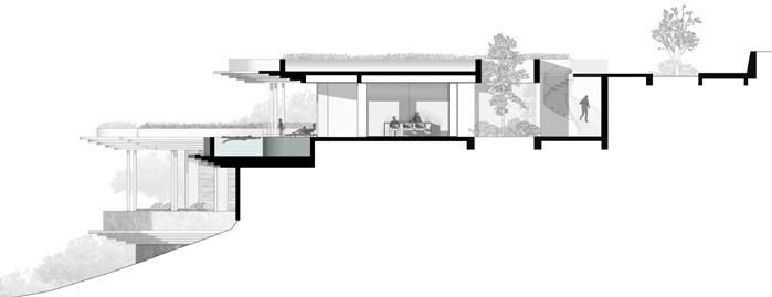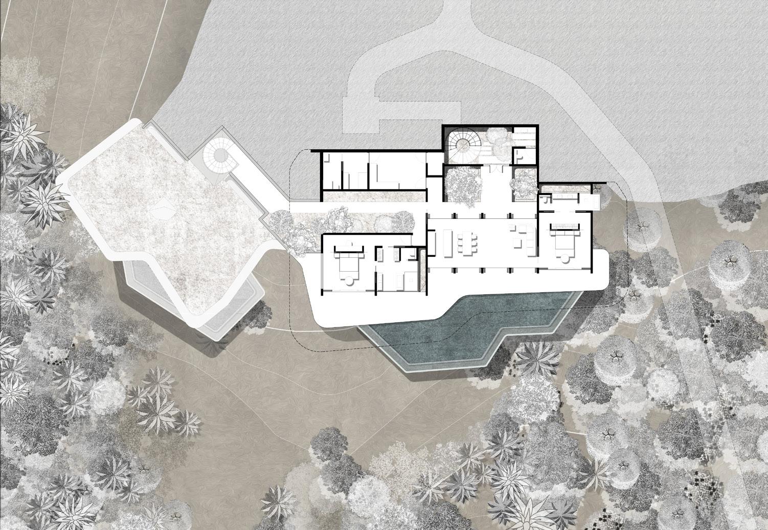 Five exclusive units of the villa offer more privacy and connections to nature. The contour of the terrain defines the villa’s volume. The dynamic forms of green roof, deck, and pool are the elements that merge the massing volume into the landscape. The villa can be accessed from the back at its roof level. Each villa is unique as they are designed to respond to their specific locations.