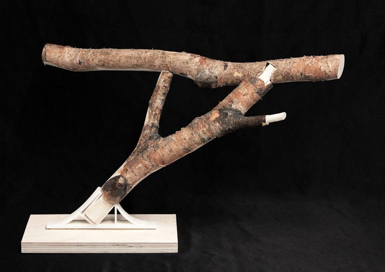 Prototype 3 tests tree inherent forms’ ability to adapt a predetermined structural geometry realized in the previous prototypes and their potential to freely self-organize to directly inform the refinement of a structure. With the goal of applying inherent forms of tree parts to create a non-standard structure at an architectural scale, the workflow of the subsequent prototypes (Prototype 3 and 4) assumes a collection of physical local raw wood as the departure point and structural design agents.