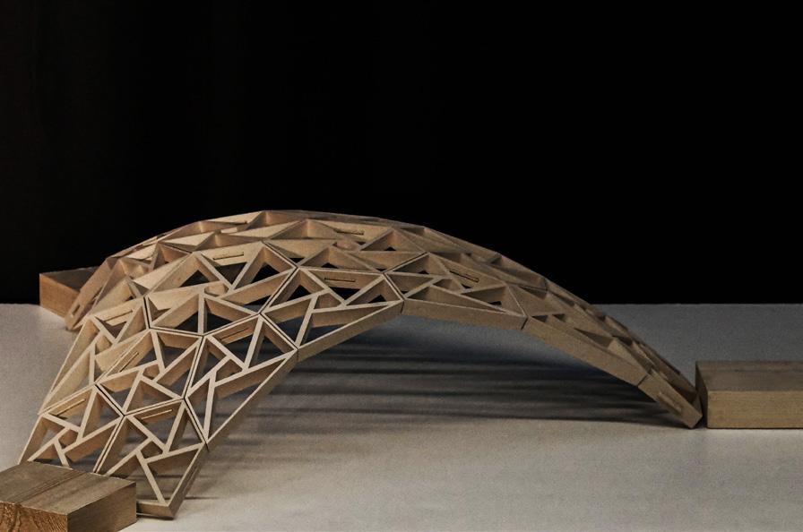 Prototype 2 retains the global geometry and structural repetitive patterns established in Prototype 1. However, a deeper level of systems thinking was applied to the structural components. This involves the division of components into units, each strategically designed with the sequences of assembly in mind.