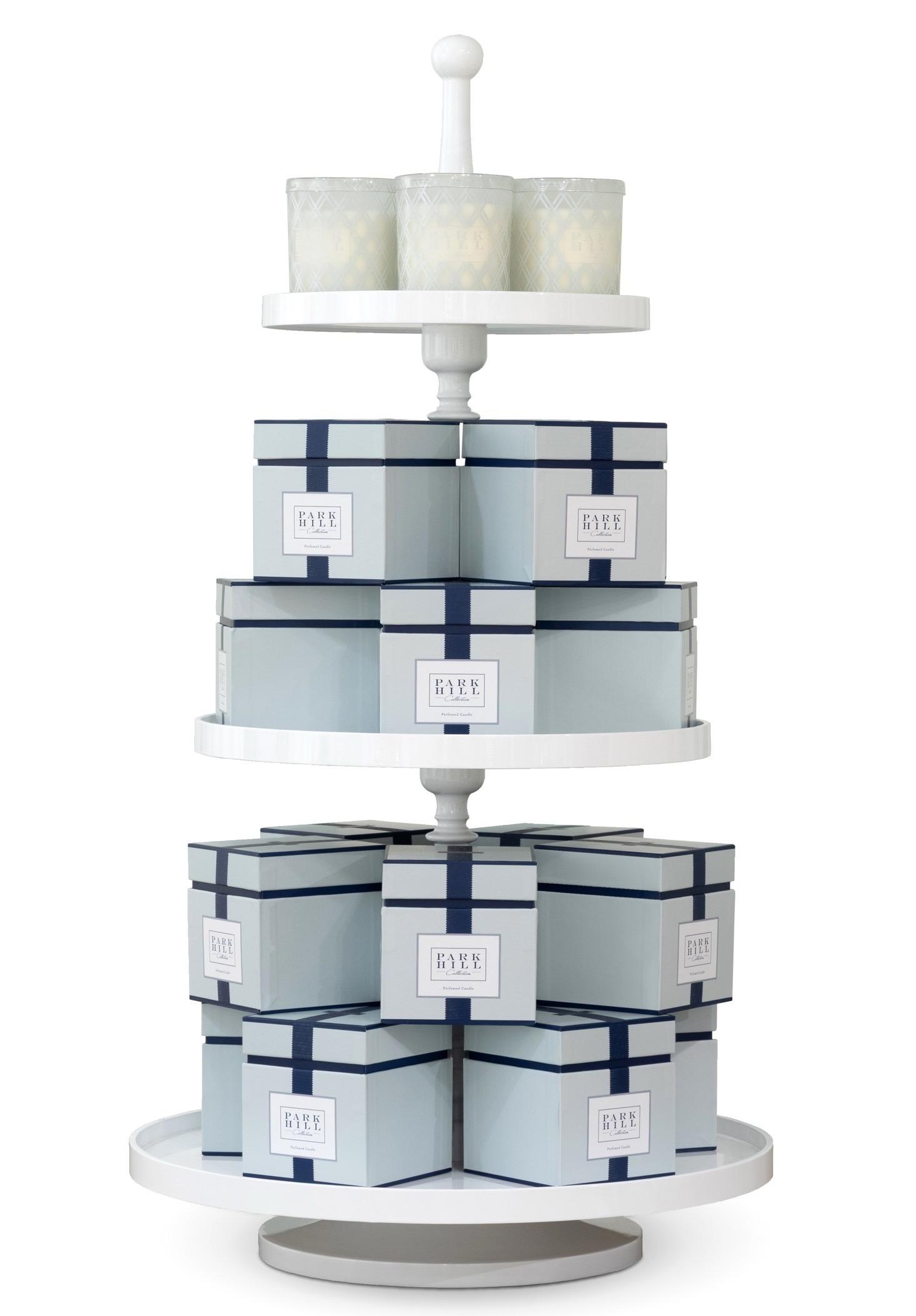 POURED CANDLES POURED CANDLES Above & Left: Cascade Three-Tier Stand, Hydrangea White; D-132-2-755-07C, Shown with Park Hill Collection Candles; Bimini Kitchen Island, Whitewash: F-114-2-090-001