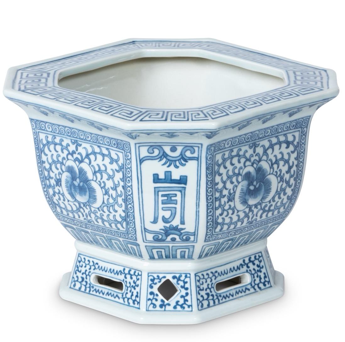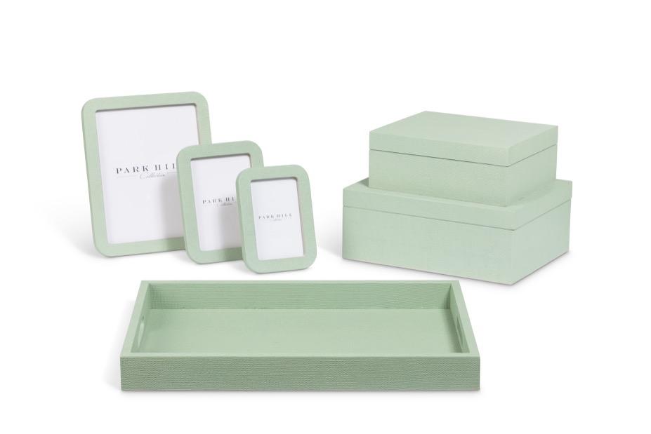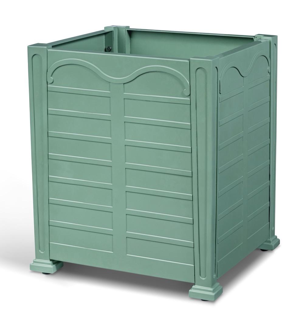Left: Preserved Boxwood Ball, 21”: EBD80086; Bay Lake Planter, Small, Palm Island Green: F-002-6-314-36A