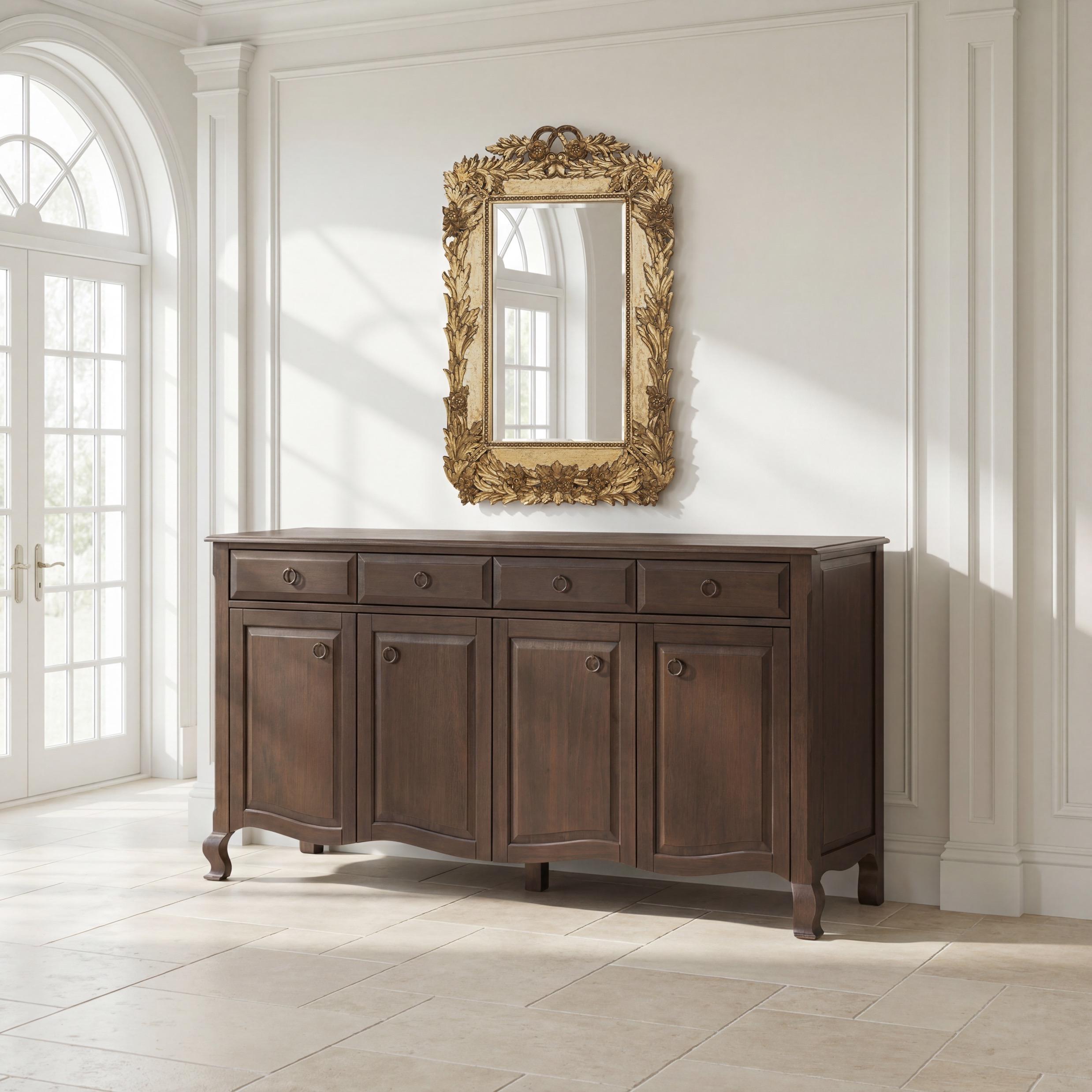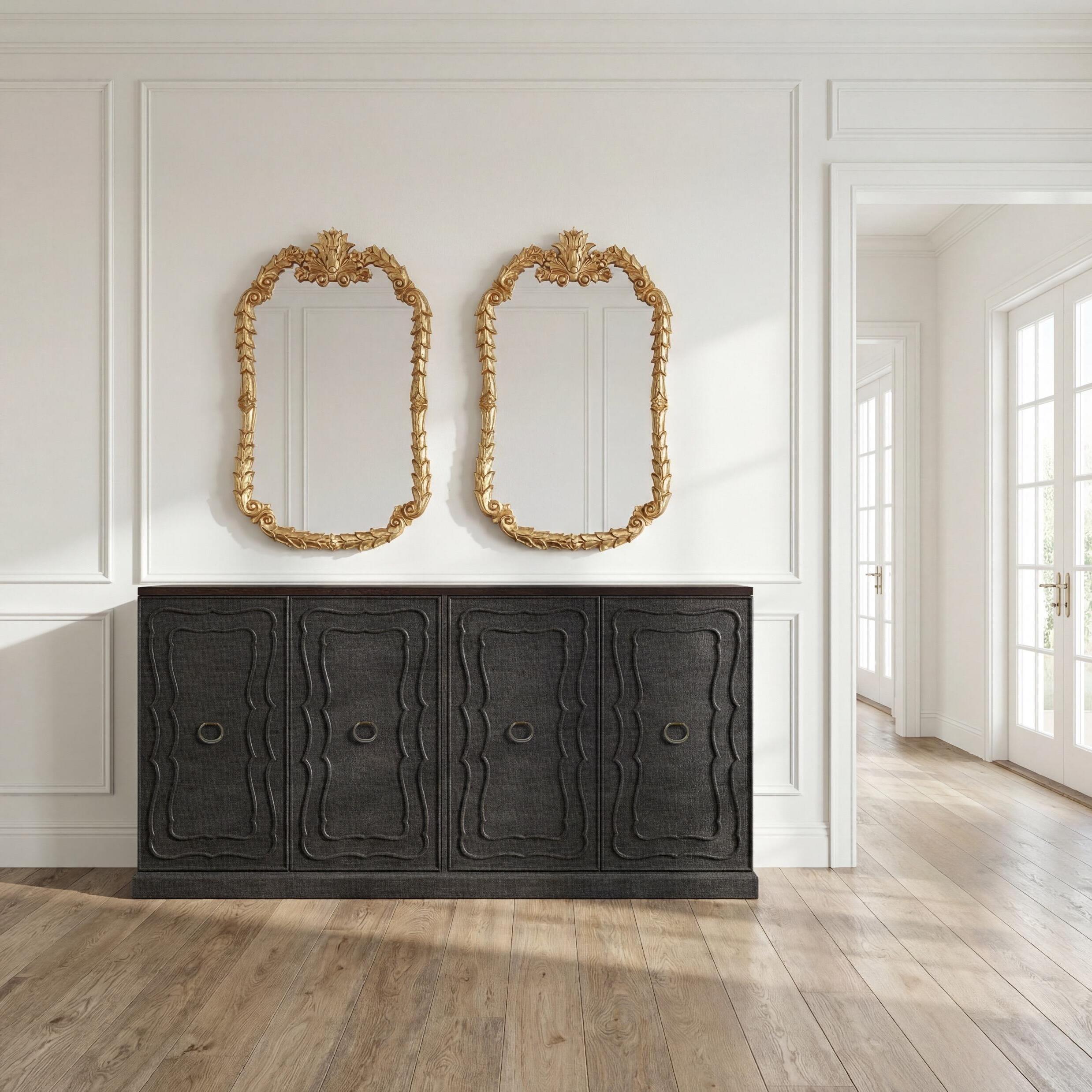 Left: Great House Sideboard, Truffle: F-010-2-145-003; Fontainebleau Mirror, Soft Gold: EWI25595