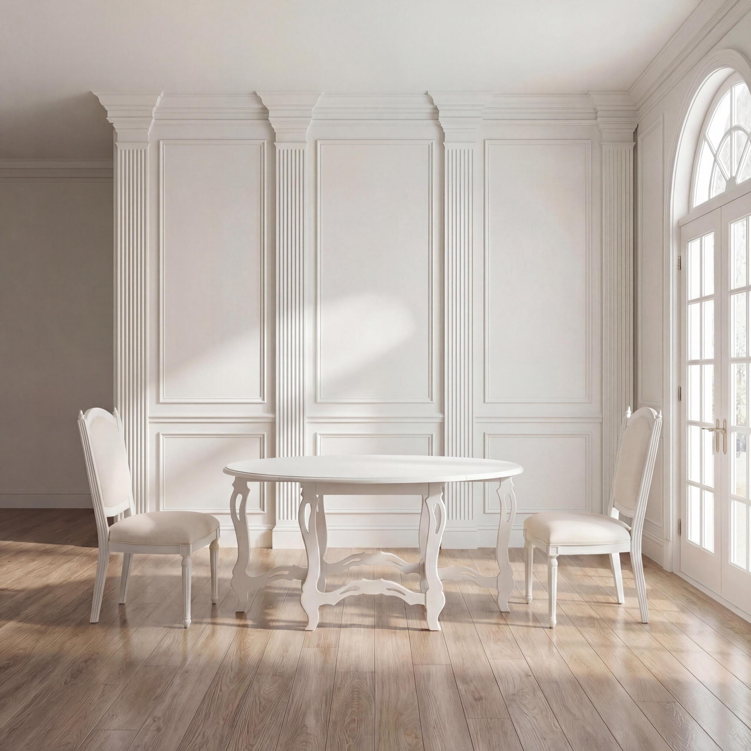 Left: Cotswold Dining Table, Whitewash: F-004-2-010-001; Cotswold Side Chair, Whitewash: F-004-2-131-001