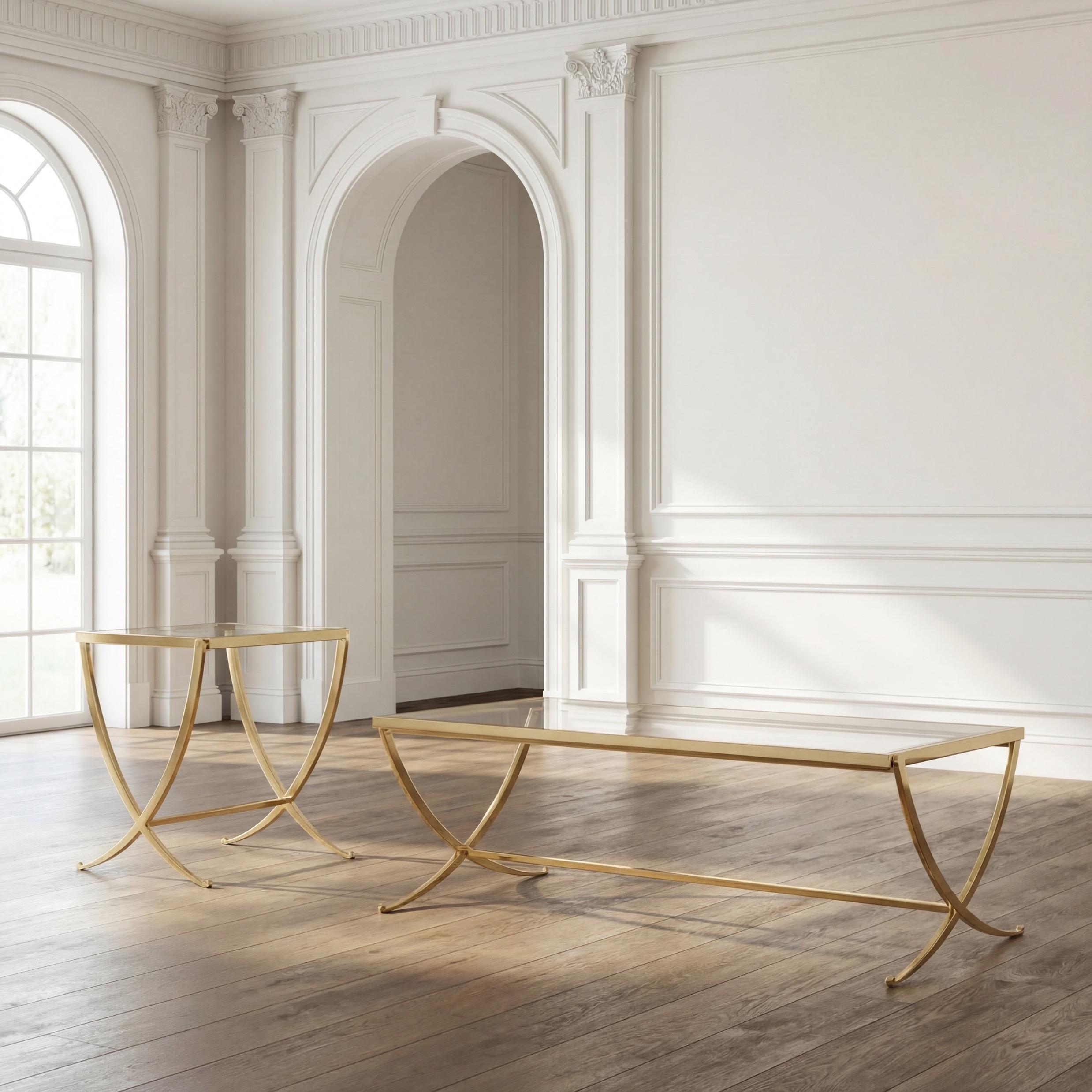 Left: Great House Hall Chest, Truffle: F-010-3-151-001; Apollo Mirror, Lustre Gold: EWI25601