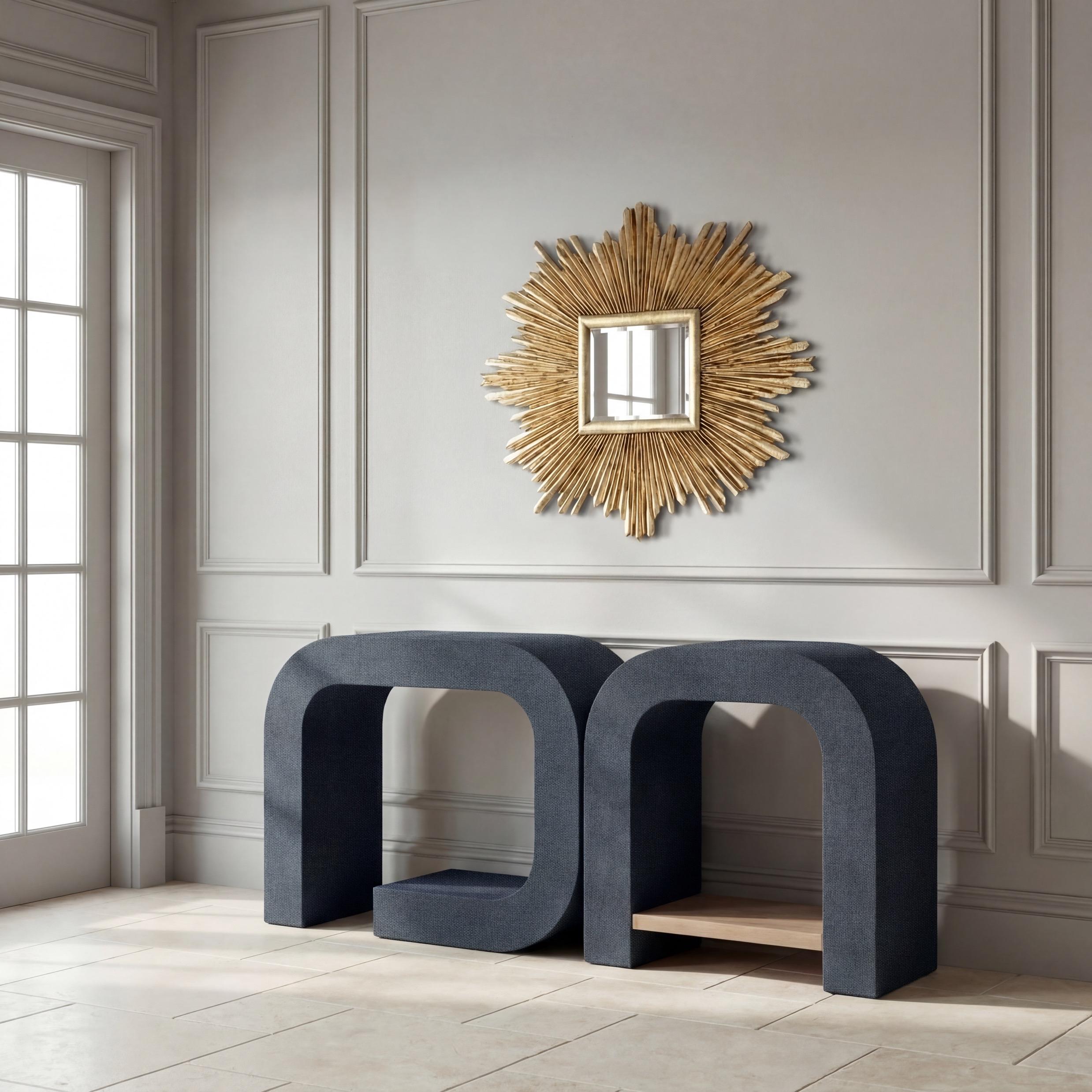 Following Two Pages: Soleil Sunburst Mirror, Lustre Gold: EWI25596; Great House Hall Chest, Driftwood: F-010-3-151-002; Great House Hall Chest, Whitewash: F-010-3-151-001
