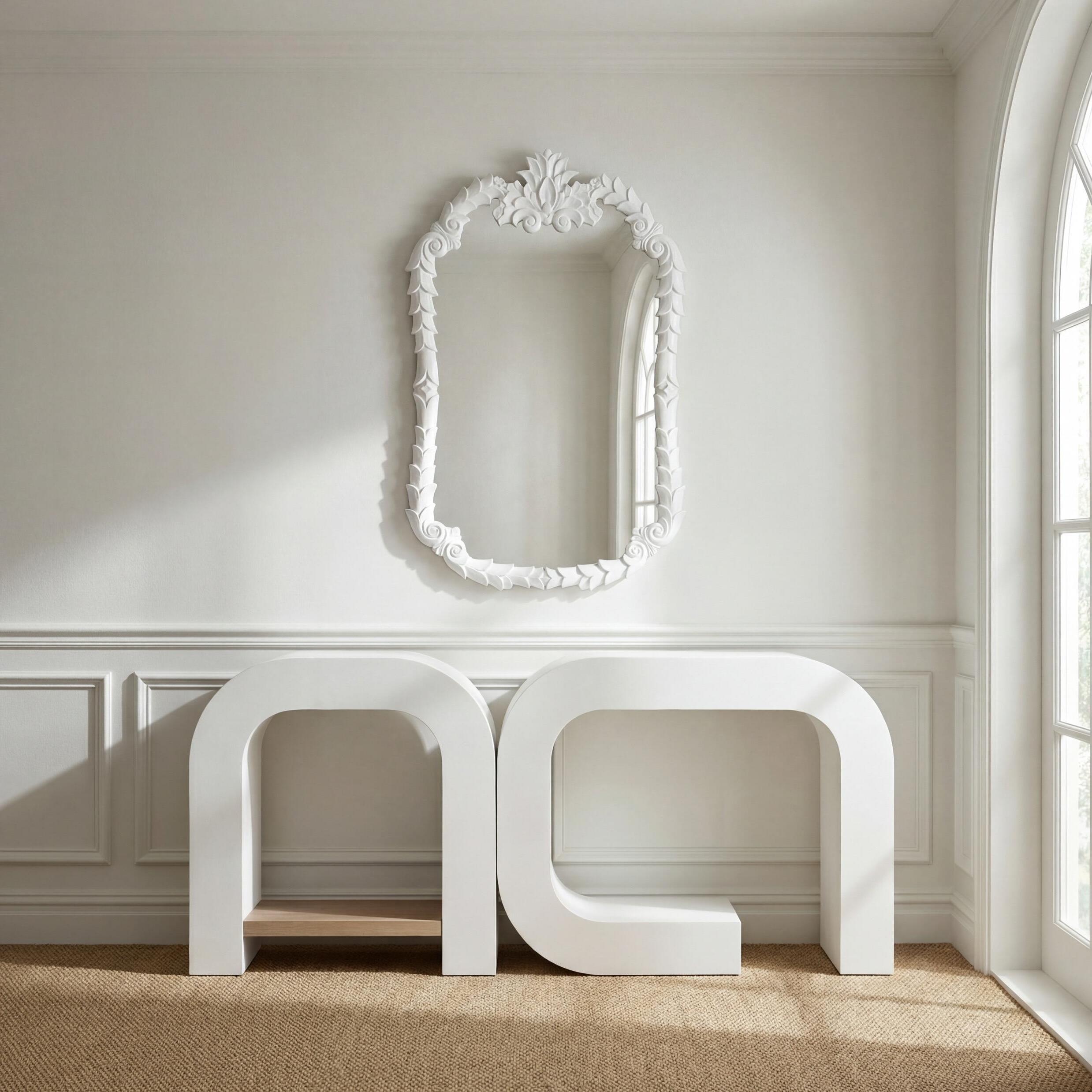 Above: Apollo Mirror, Lustre Gold: EWI25601; Great House Hall Chest, Whitewash: F-010-3-151-001; Great House Hall Chest, Driftwood: F-010-3-151-002; Great House Hall Chest, Truffle: F-010-3-151-001