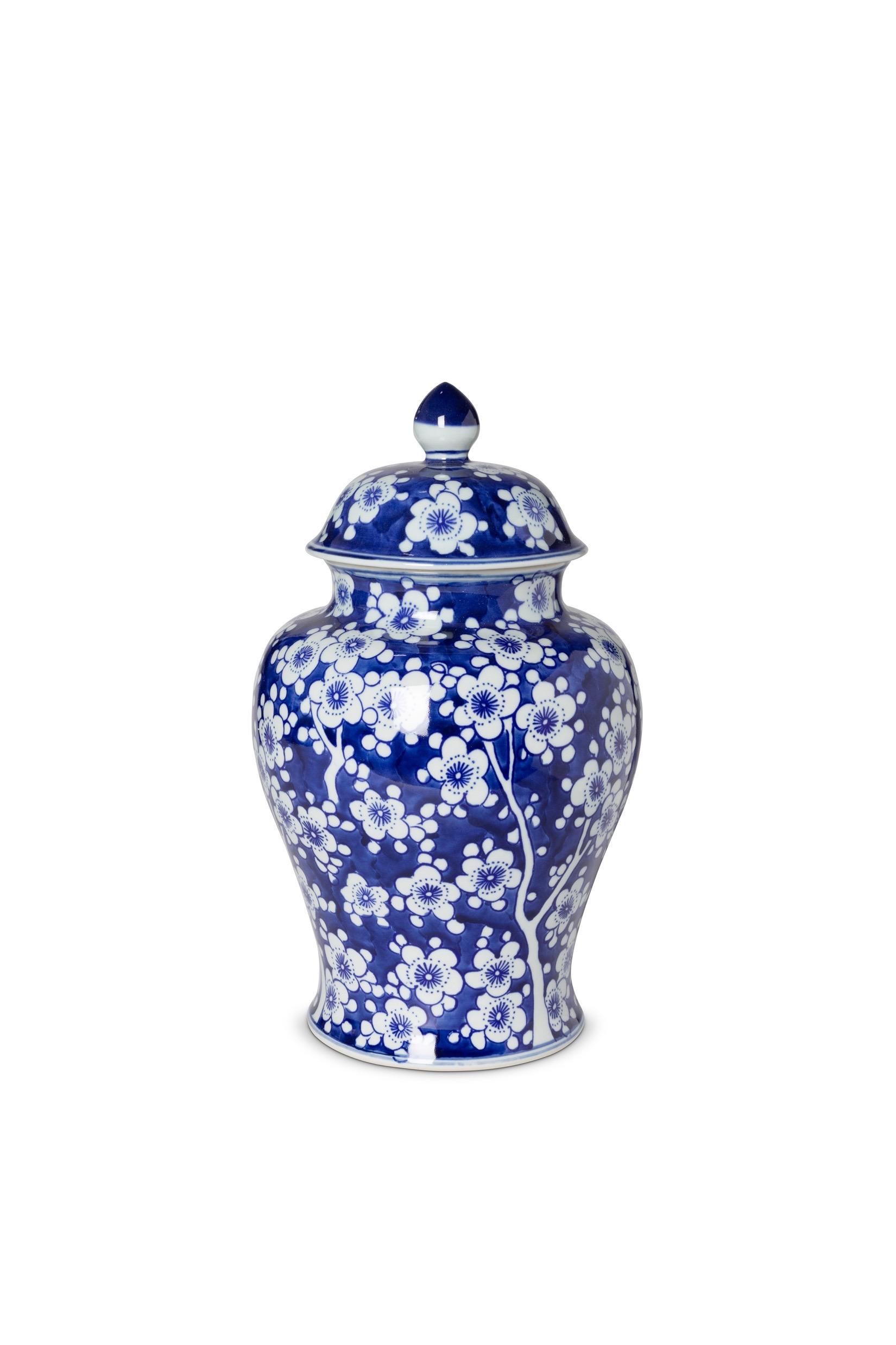 Left: Imperial Ceramic Geometric Square Jar, White and Blue, Large: D-067-3-424-009, Imperial Ceramic Geometric Square Jar, White and Blue, Small: D-067-3-425-009, Phalaenopsis Orchid Plant in Concrete Pot Small: EBQ10152, Phalaenopsis Orchid Plant in Concrete Pot Large: EBQ10153, Chinoiserie Garden Stool: ECL36204, Jardin Boheme Botanical Prints: EWA26082, Great House Hall Mirror, Truffle: F-010-3-121-003, Great House Hall Chest, Truffle: F-010-3-151-003