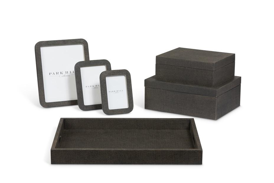 Left: Balboa Bay Lacquered Decorative Tray, Silk Linen: D-052-3-361-12C