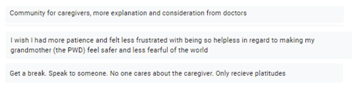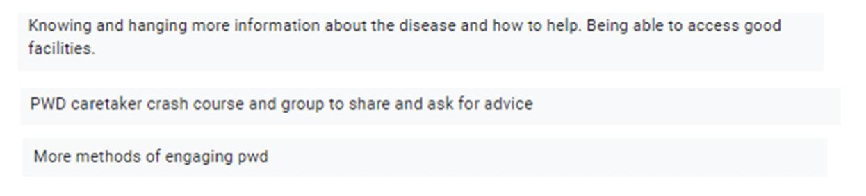 Survey of 85 primary caregivers of Person living with Dementia (PWD)