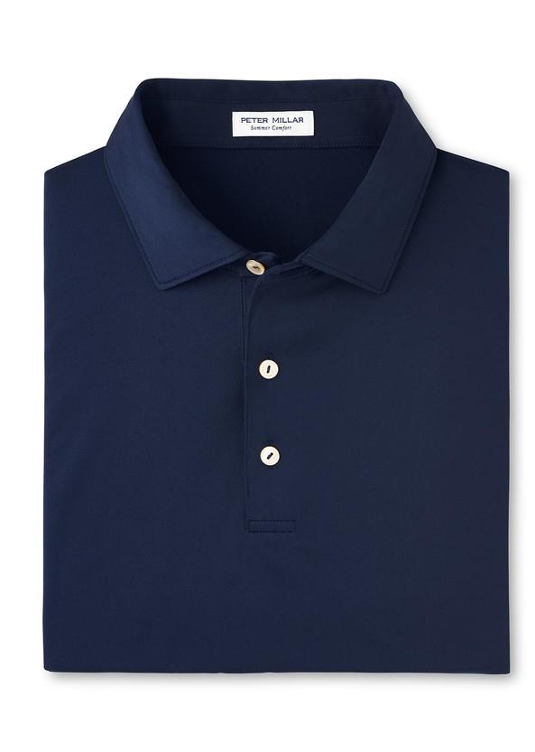 PETER MILLAR MEN'S NAVY SOLID PERFORMANCE POLO- SELF COLLAR