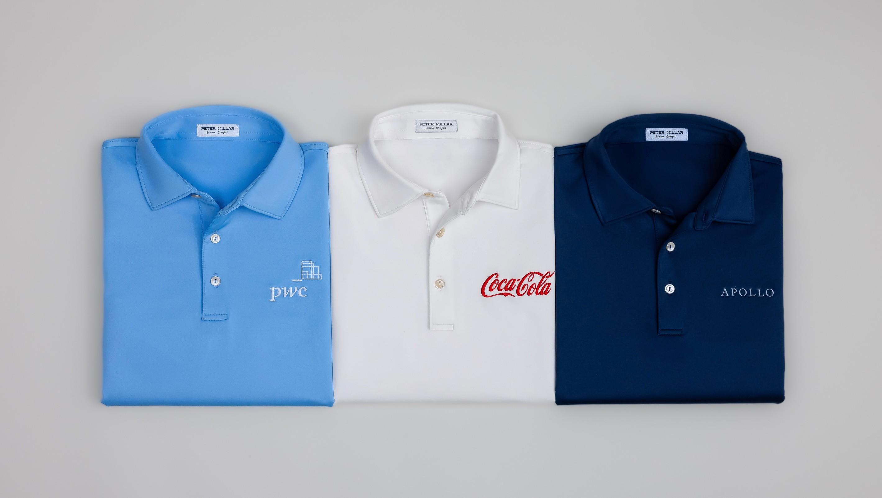 We make it easy to order Peter Millar corporate apparel and accessories. Are you looking for a custom Peter Millar performance polo that won't let you down? Look no further than the Peter Millar Men's Solid Performance Polo - Self Collar. This style is made from a comfortable fabric that keeps you dry, stretches in all directions, and is easy to embroider with your company logo. This fabric will keep you cool and comfortable at your next corporate event or company outing. This custom polo shirt is finished with a self-fabric collar and a three-button placket and will become a staple in your corporate wardrobe.