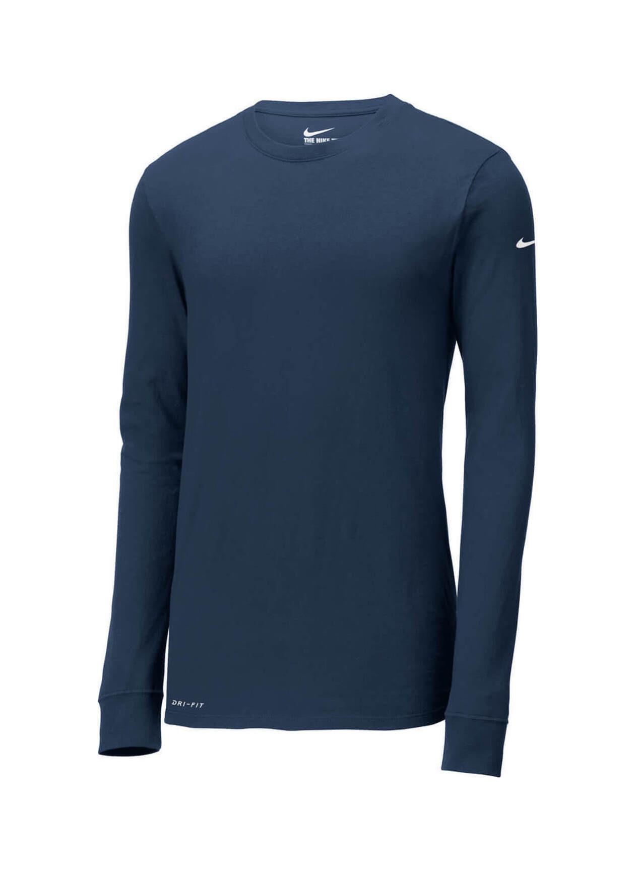 Introducing the Nike Men's Dri-FIT Long-Sleeve T-Shirt! This custom Nike tee features sweat-wicking fabric to help keep your team dry and comfortable at your next corporate outing. The Dri-FIT technology wicks away sweat to help keep them cool, while the long sleeves provide coverage and protection from the sun. This customizable shirt is also lightweight and breathable, making it perfect for any activity. Whether they are in the company wifleball league or meeting for after-work drinks, this shirt will keep them looking great. Shop Corporate Gear for custom Nike clothing today!