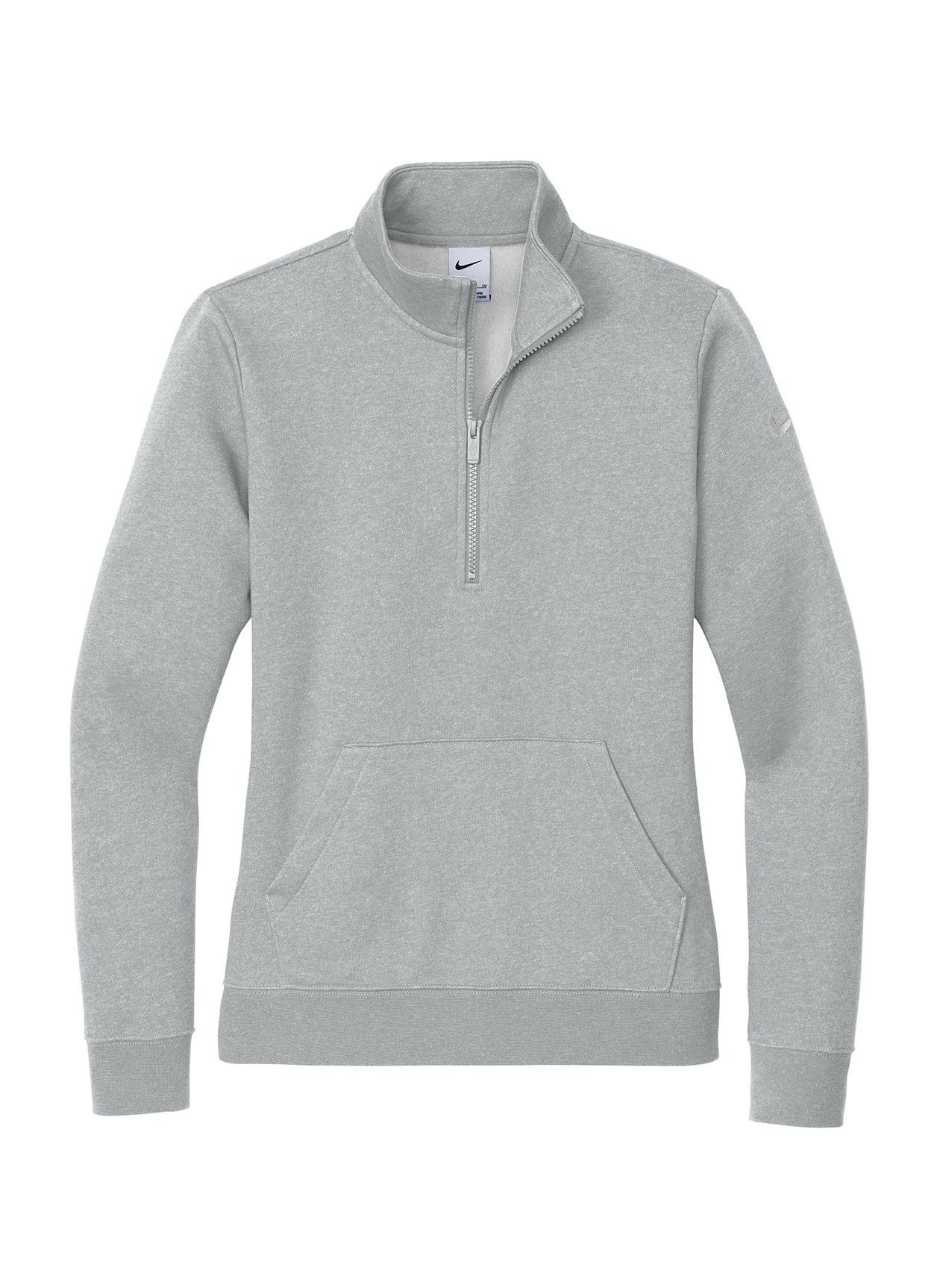 Introduce custom quarter zips, like the Nike Women's Club Fleece Sleeve Swoosh 1/2-Zip, into your organization's apparel lineup. This brushed -back Nike quarter zip is designed to meet the versatile needs of your employees’ dynamic lifestyles. Crafted from an 8.3-ounce blend of 72% coton, 20% recycled polyester, and 8% organic coton, these Nike quarter zips showcase your organization's commitment to eco-friendly practices. For gear that gives back, look no further than Nike.