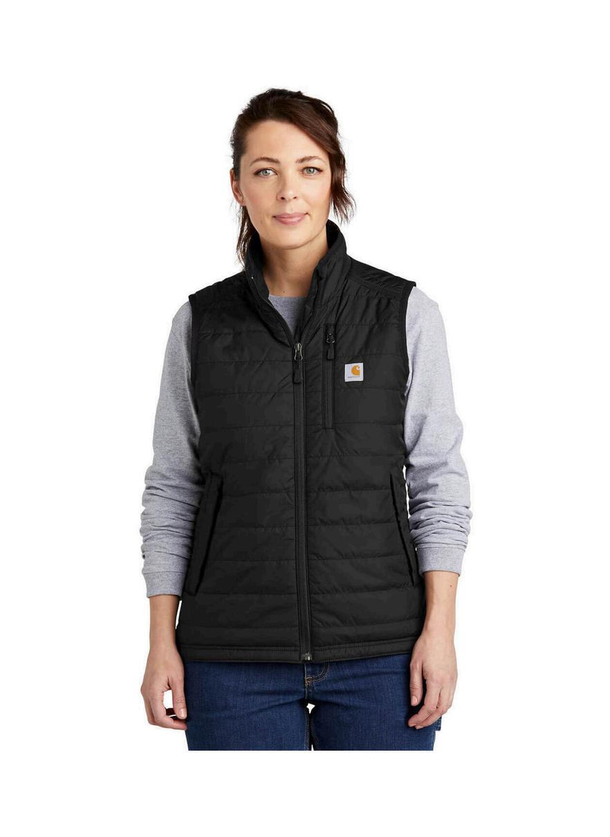 Are you looking for a vest that will keep you warm and dry on those cold, wet days? Check out the Carhartt Women's Gilliam Vest. This vest is made from a nylon Cordura shell with Rain Defender durable water repellent and Wind Fighter technology to tame the wind. The nylon lining is quilted to polyester insulation for added warmth. The two hand pockets have hidden snap closures, and there are two interior pockets: one zippered and one hook and loop closure. The drawcord adjustable drop tail hem keeps the elements out, and the Carhartt-strong triple-stitched main seams add serious durability. The high-profile Carhartt brand label is sewn on the chest pocket, which will look great with your company logo! Get yours today and shop more Carhartt vests at Corporate Gear!