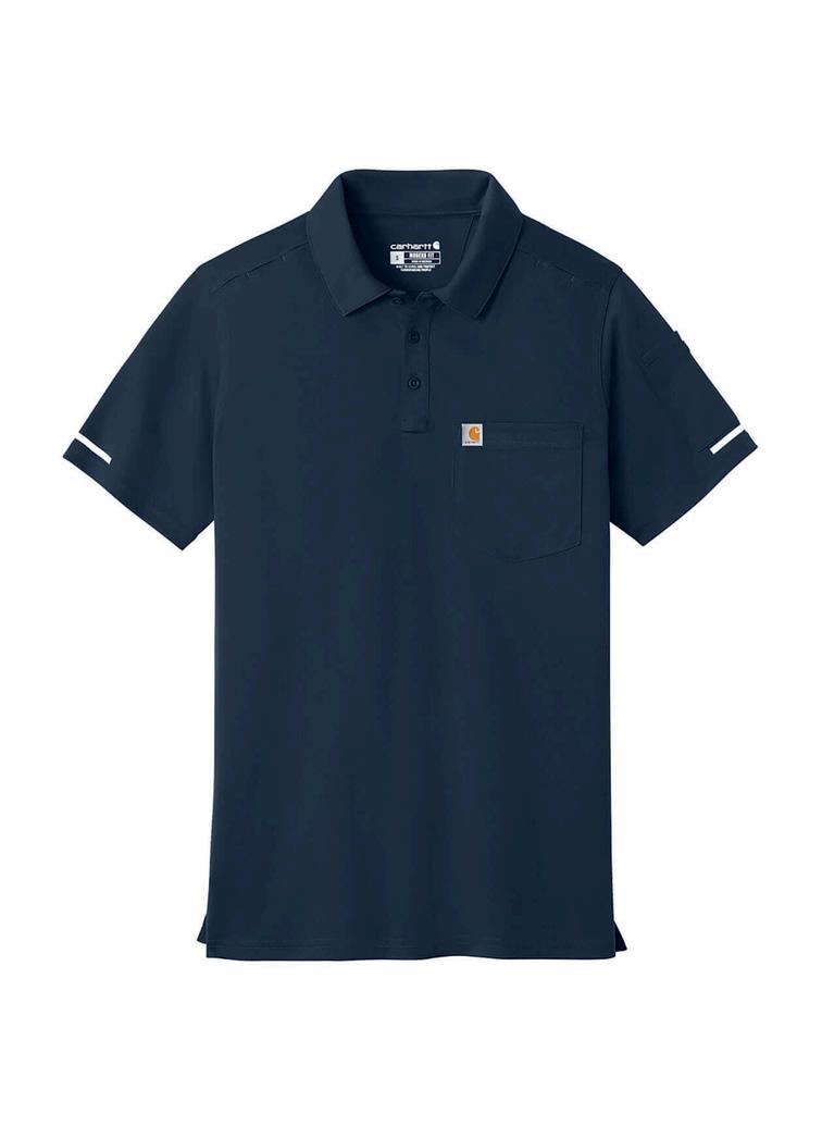 The Carhartt Men's Force Snag-Resistant Pocket Polo is designed to handle tough workdays while keeping the wearer looking professional. Made from polyester snag-resistant jersey, these customized polo shirts feature Carhartt Force technology to wick sweat, dry fast, and fight odors. With FastDry technology and UPF 40 protection, these custom polos stay cool and offer all-day protection. This business casual polo includes a non-roll rib knit collar, a tagless neck label, and a three-button placket with dyed-to-match buttons. A utility loop at the placket and a Carhartt label on the left chest pocket complete this relaxed fit essential.