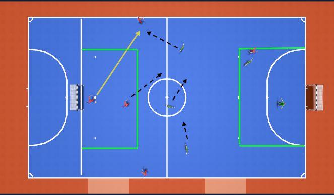 • Toinen joukkue pelaa pallonhallintapeliä. Joukkue saa aina pisteen kun on pelannut pallon laidalta laidalle. Molemmat maalivahdit ovat pallonhallintajoukkueen puolella.