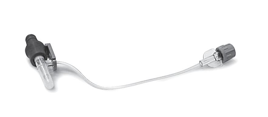 L’extrémité proximale est munie d’un raccord luer femelle. L’extrémité distale possède un raccord luer lock mâle avec port d’injection en latex. Pince coulissante pour le contrôle.